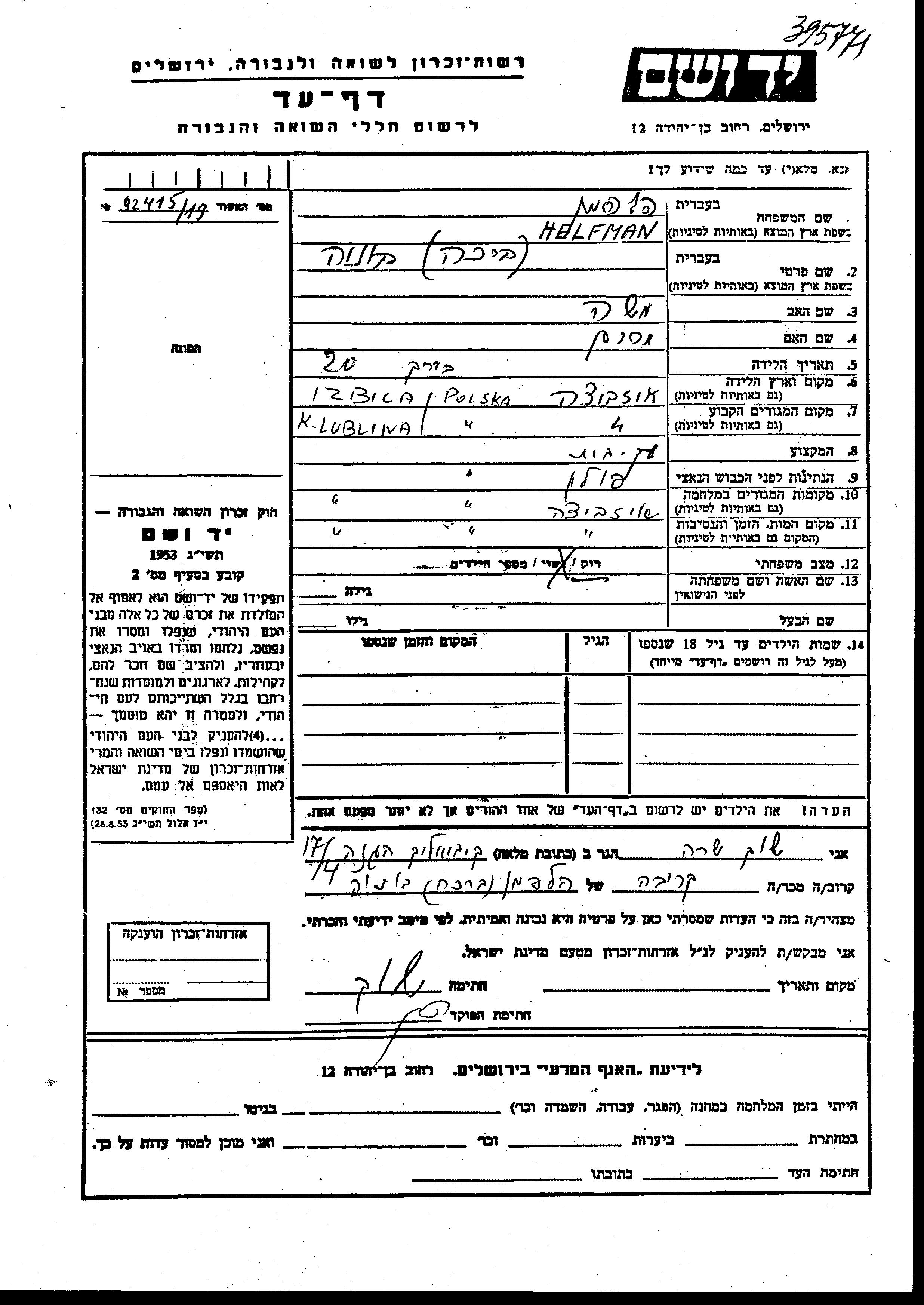 Yad Vashem - Pages of Testimony Names Memorial Collection