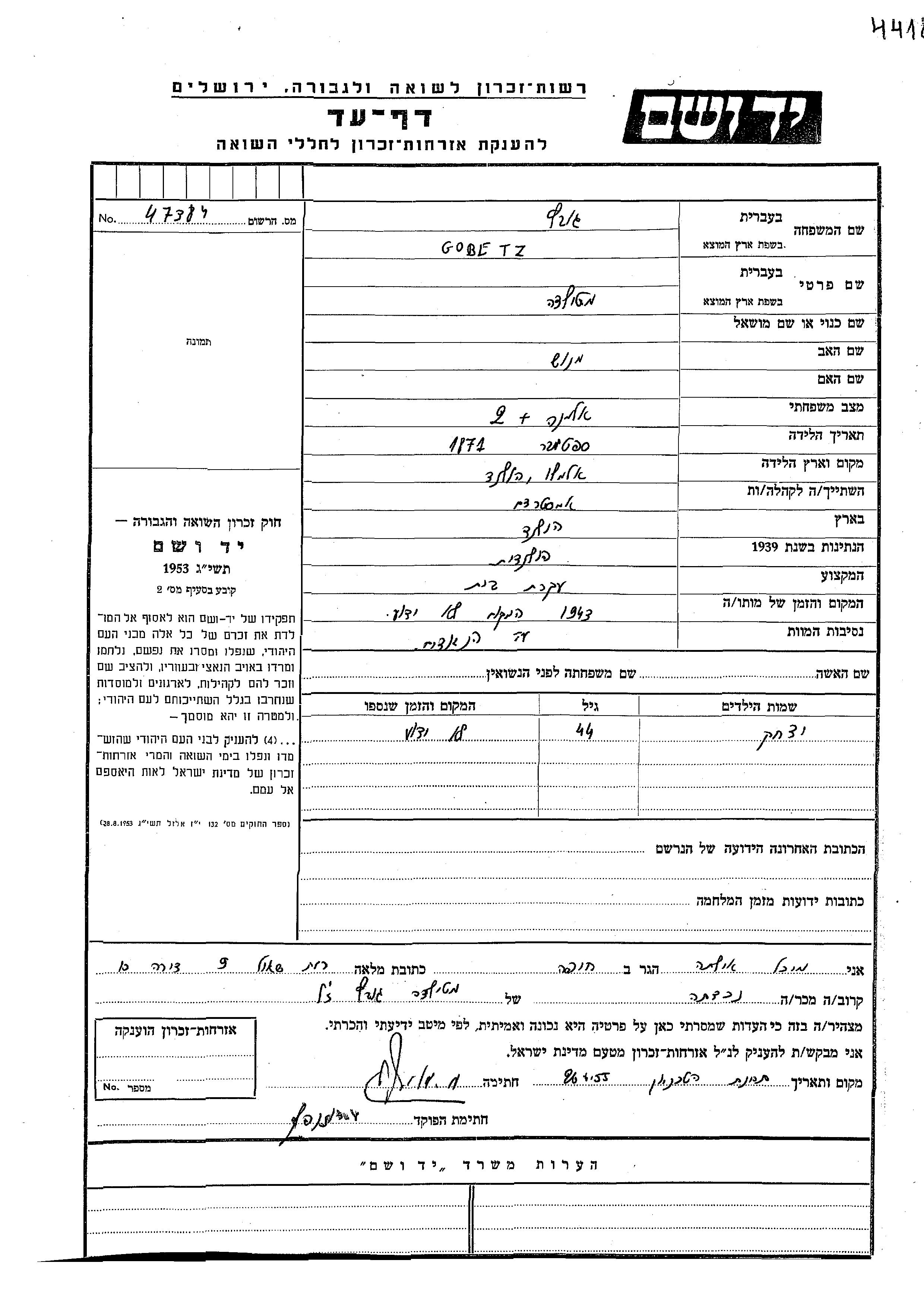 Recherche par date de la mort pendant la période de la Shoah: 1933-1945. Sélectionnez 'Exact'; dans la liste pour rechercher l'année exacte, ou sélectionner '+/- 2 ans'; ou '+/- 5 ans