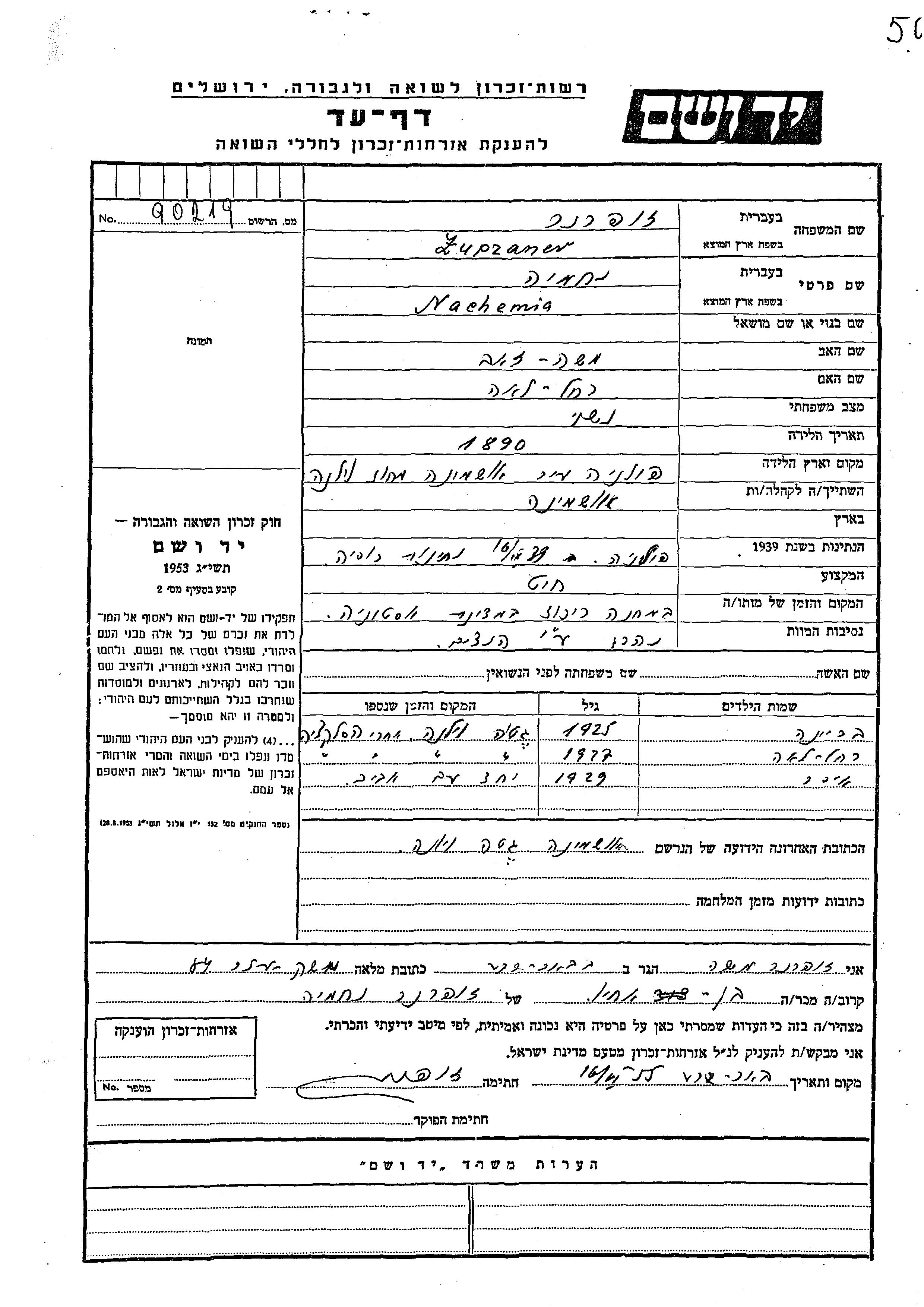 Yad Vashem - Pages of Testimony Names Memorial Collection