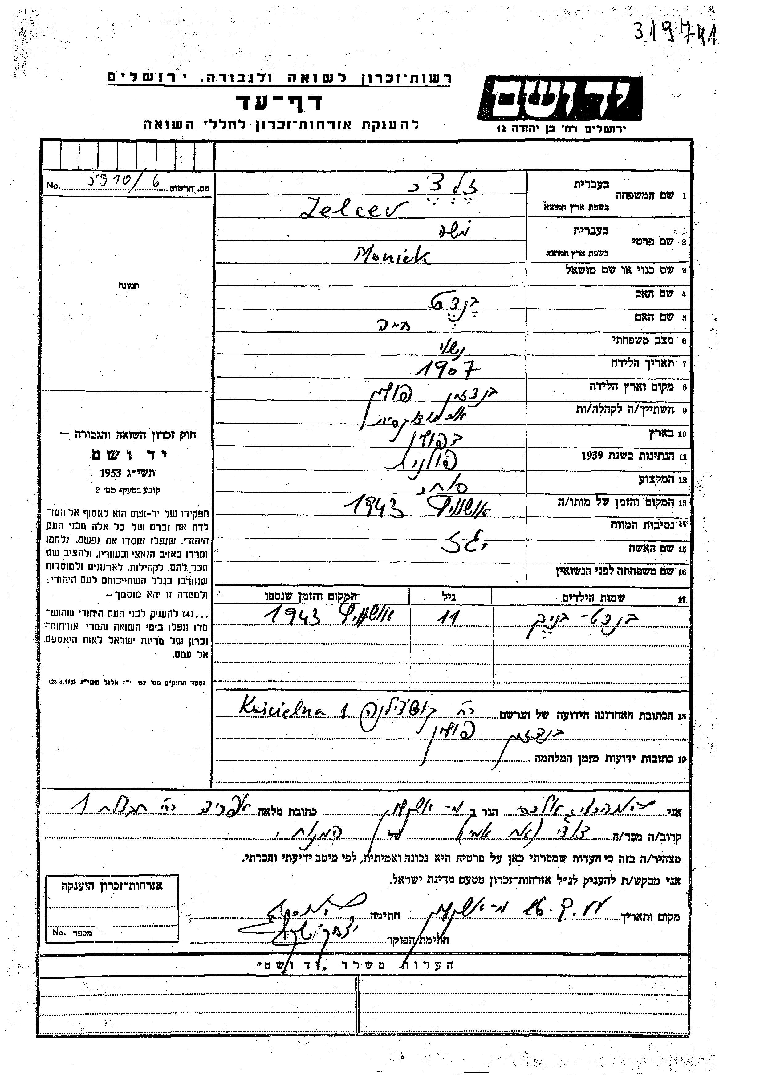 Yad Vashem - Pages of Testimony Names Memorial Collection