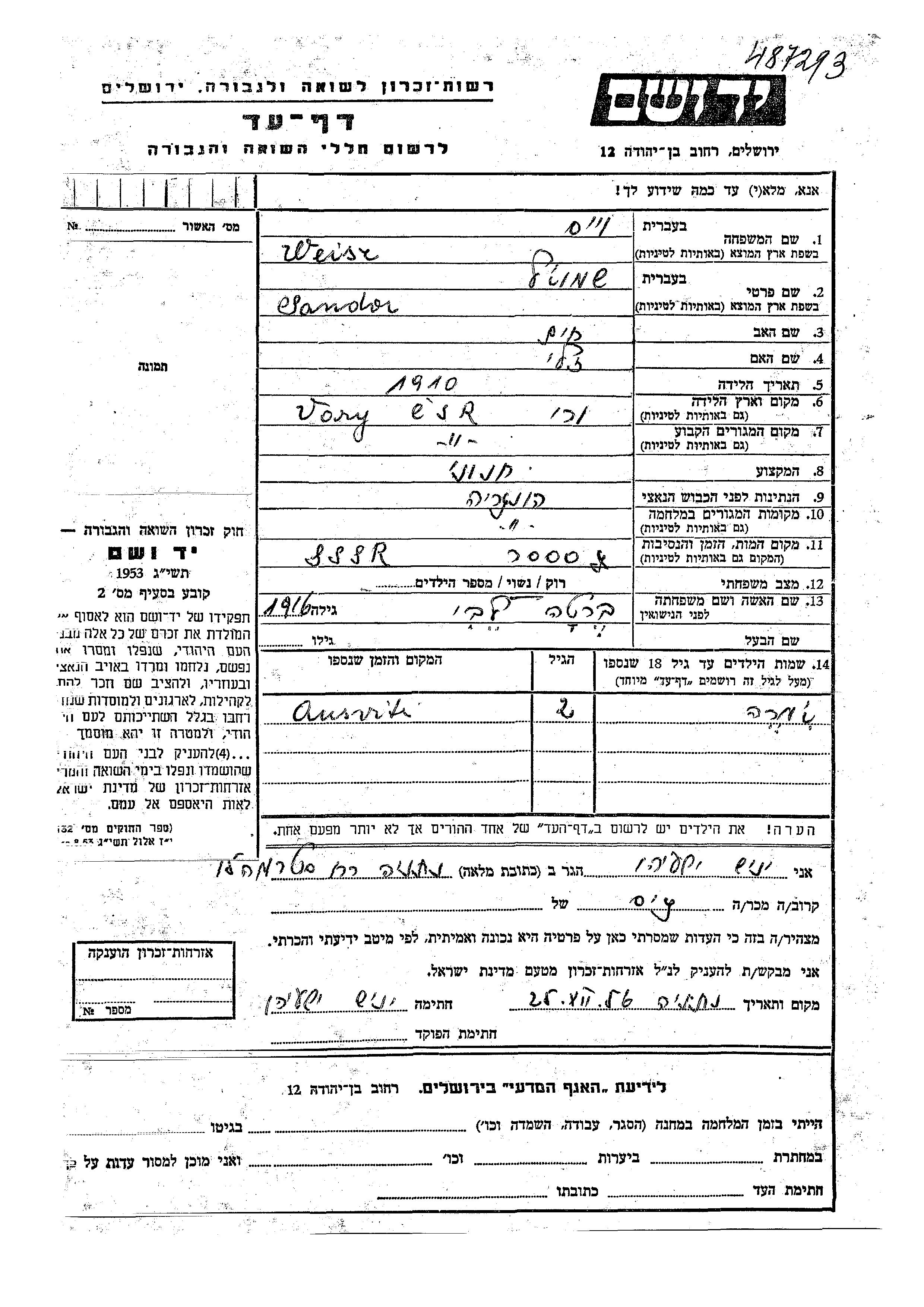 Yad Vashem - Pages of Testimony Names Memorial Collection