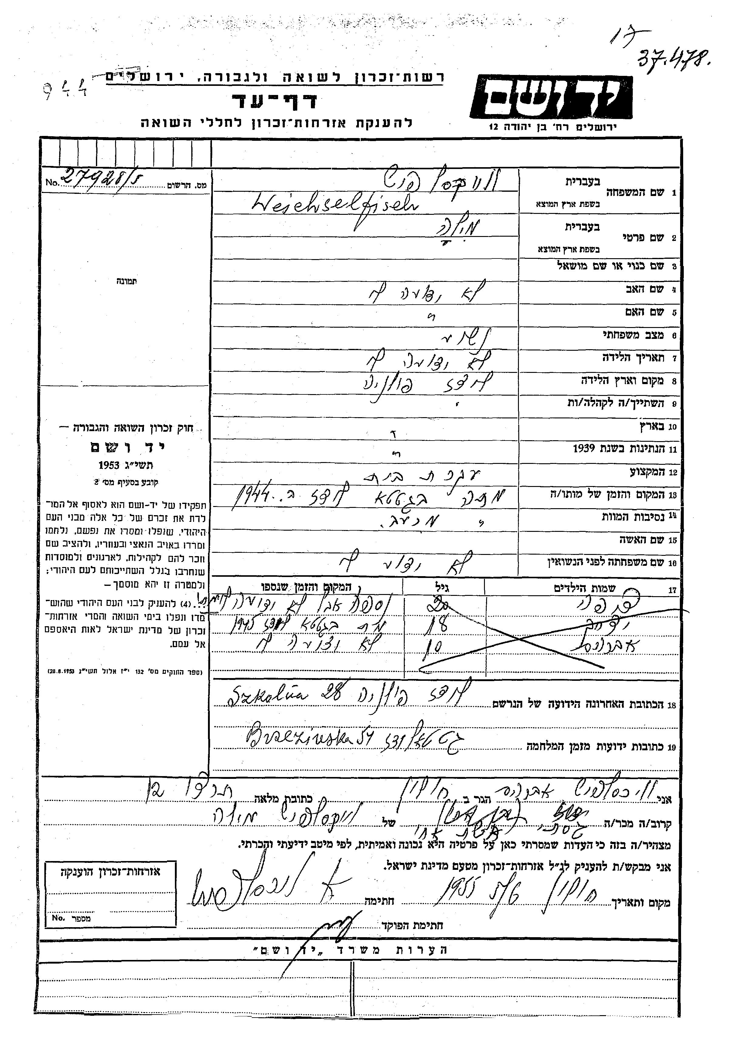 Yad Vashem - Pages of Testimony Names Memorial Collection