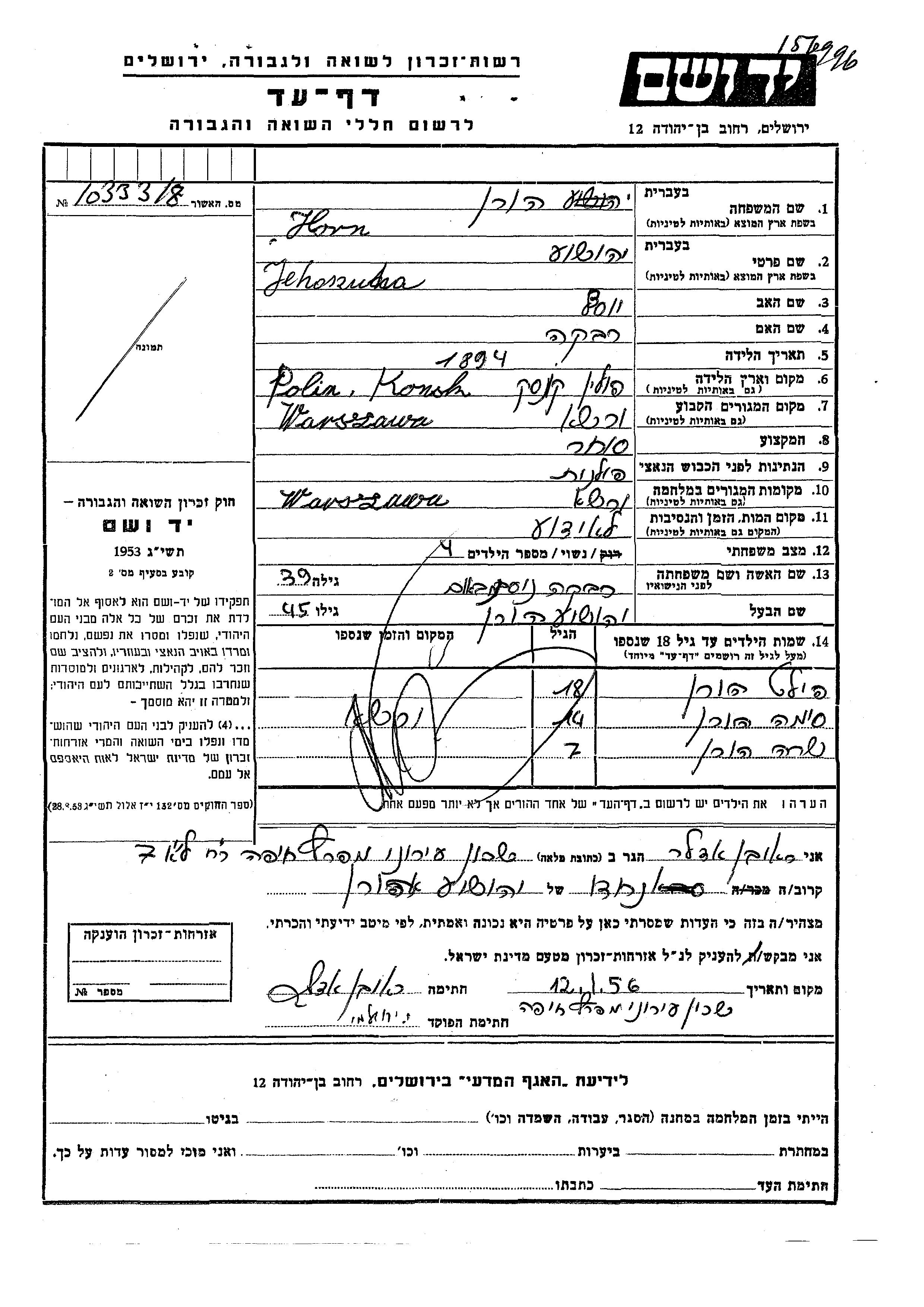 Yad Vashem - Pages of Testimony Names Memorial Collection