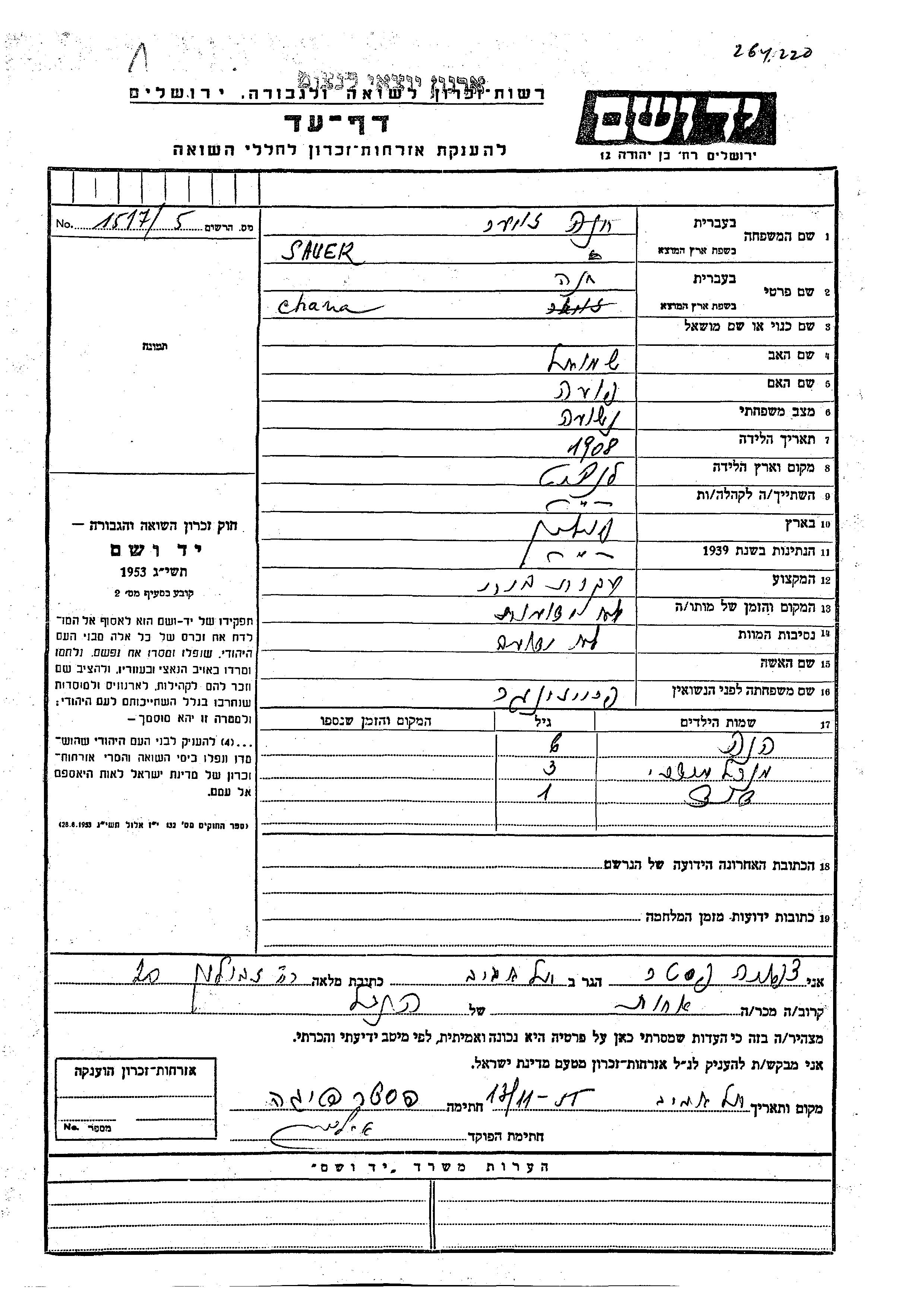 Yad Vashem - Pages of Testimony Names Memorial Collection