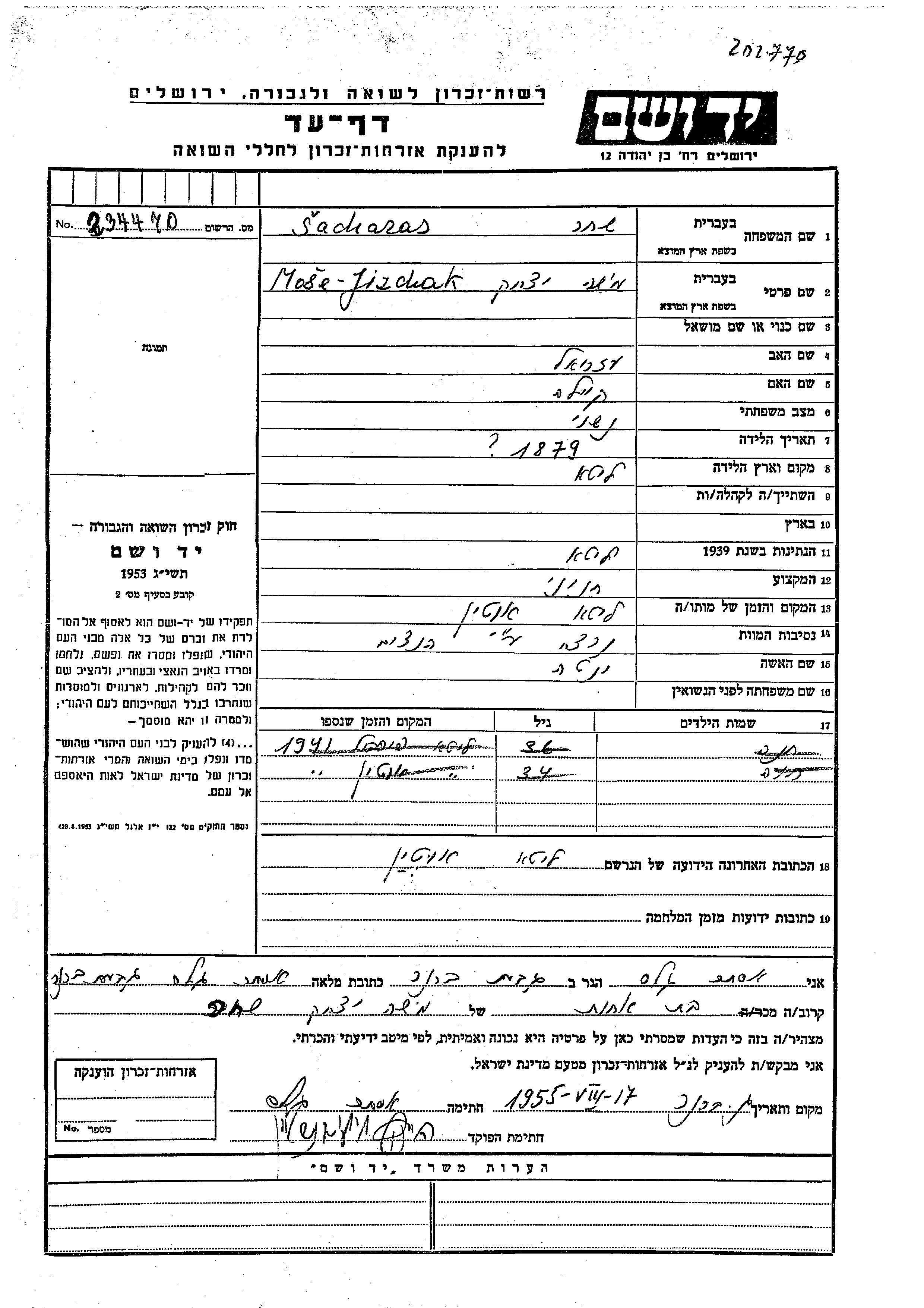 Yad Vashem - Pages of Testimony Names Memorial Collection