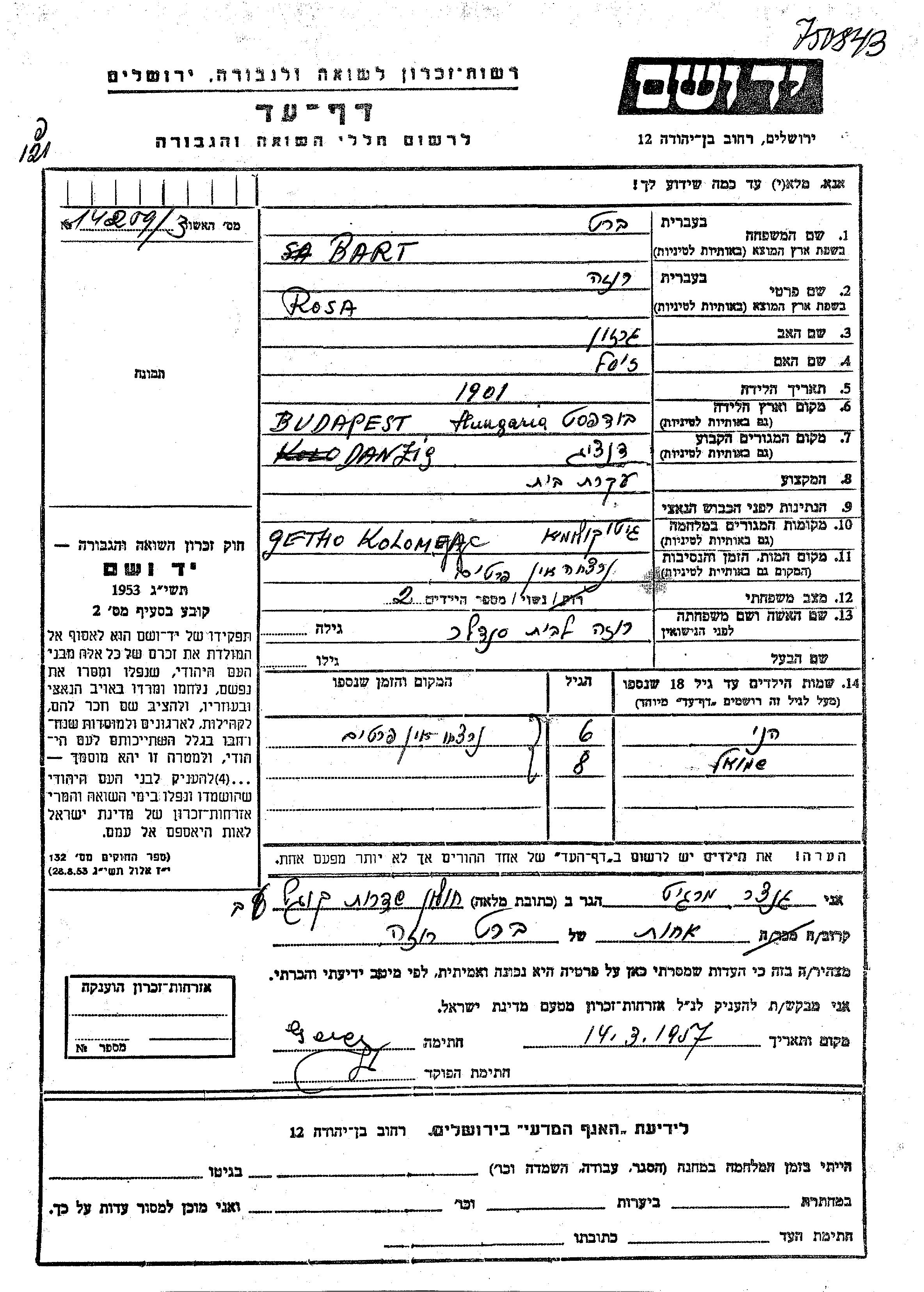Yad Vashem - Pages of Testimony Names Memorial Collection