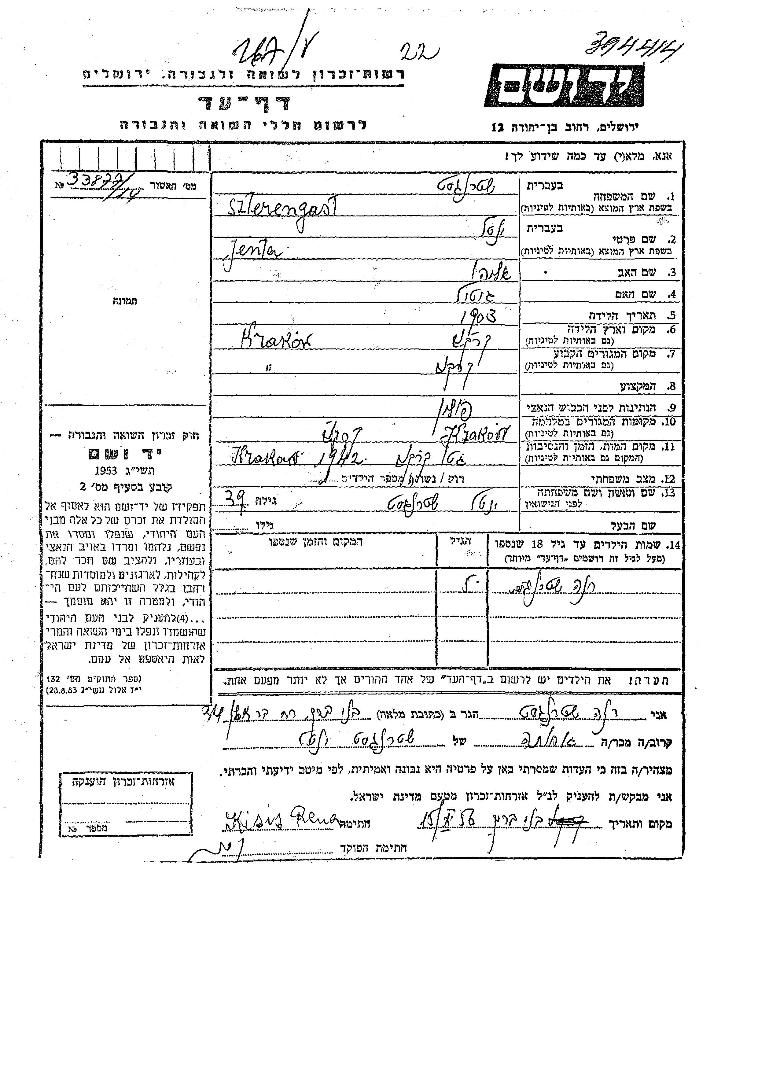 Khana Szterengast est née fille de Jenta. Elle était Enfant. Avant la seconde guerre mondiale elle vivait à Krakow, Pologne. Pendant la guerre, elle était à Krakow, Pologne.