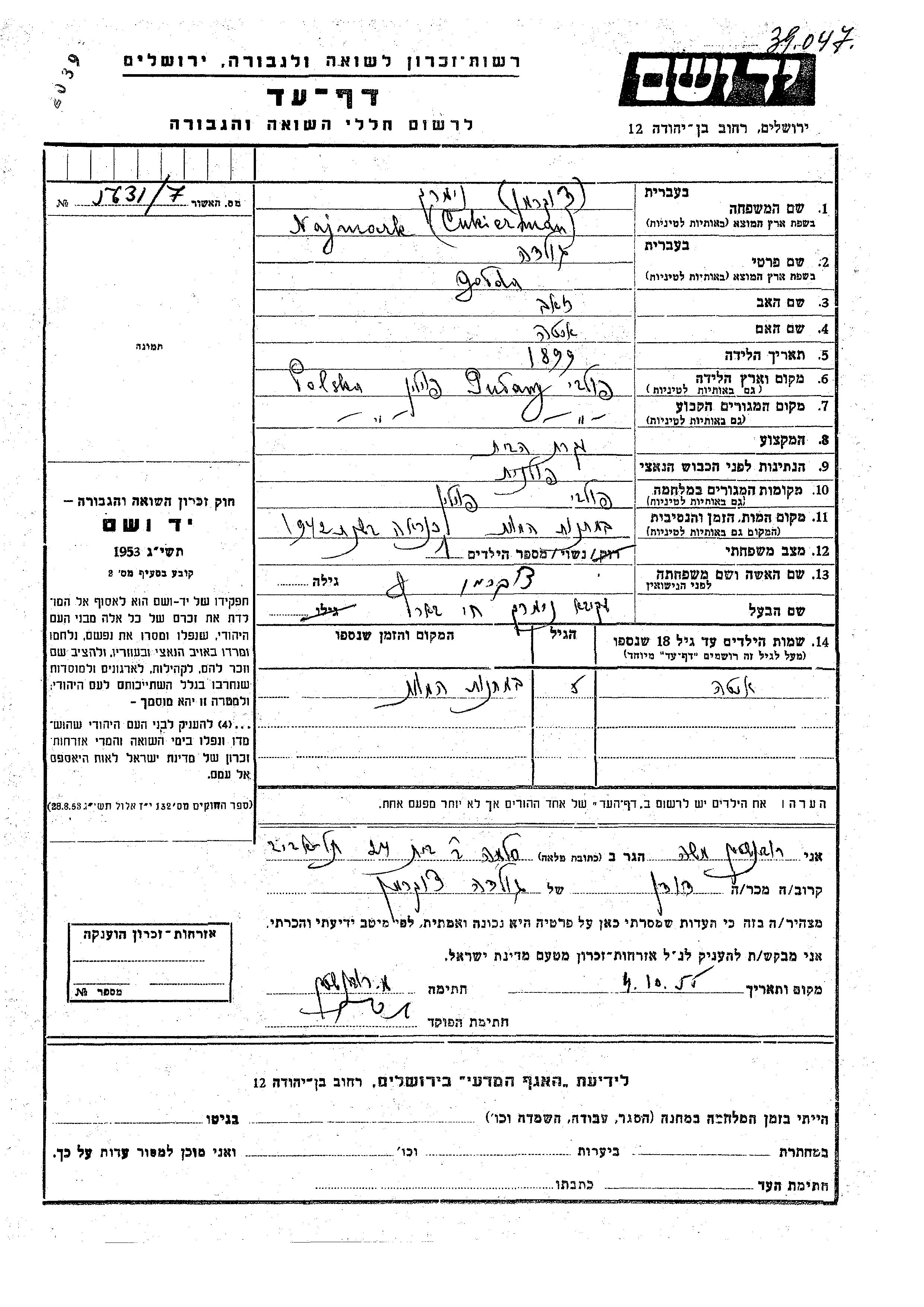 Yad Vashem - Pages of Testimony Names Memorial Collection