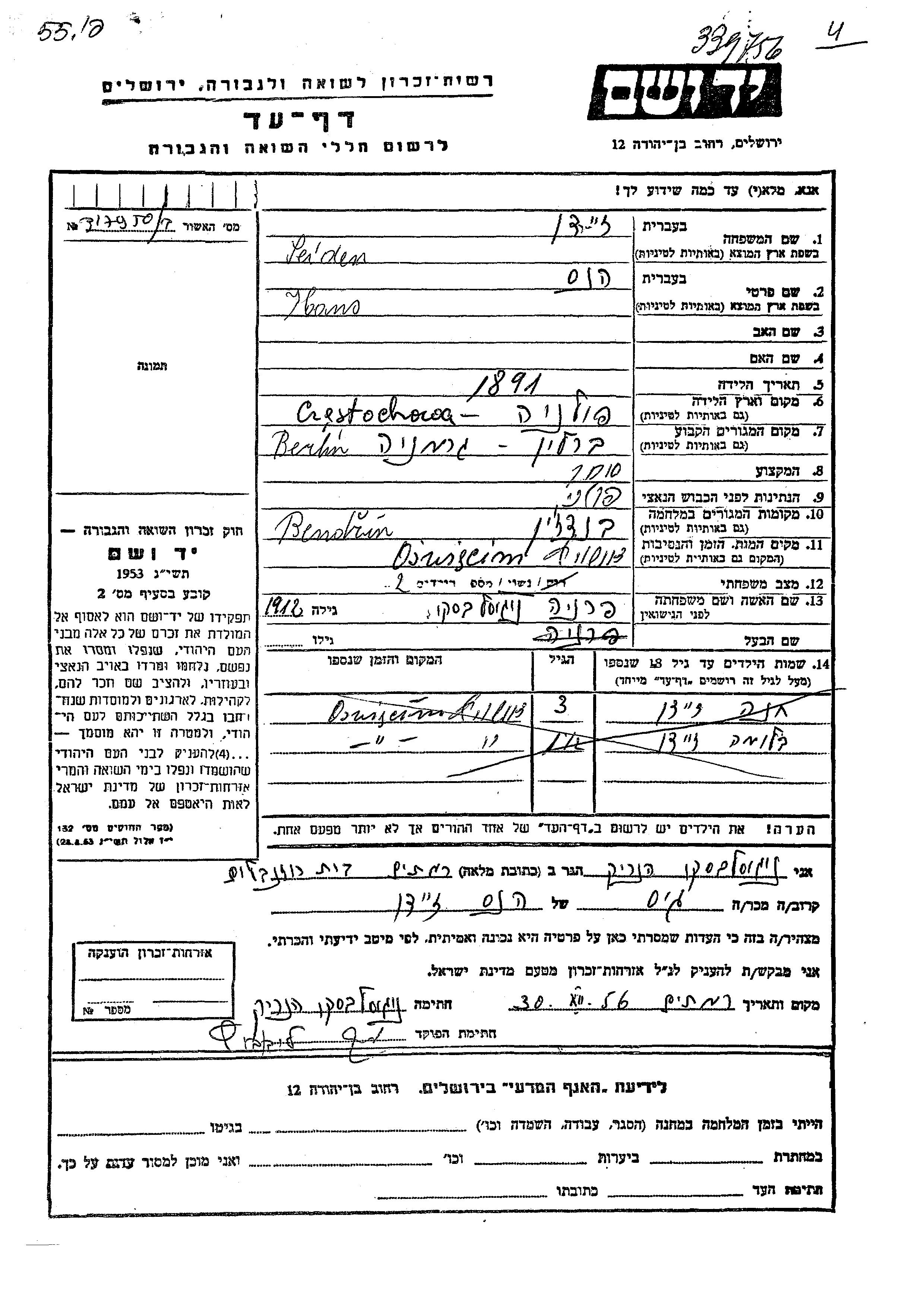 Yad Vashem - Pages of Testimony Names Memorial Collection