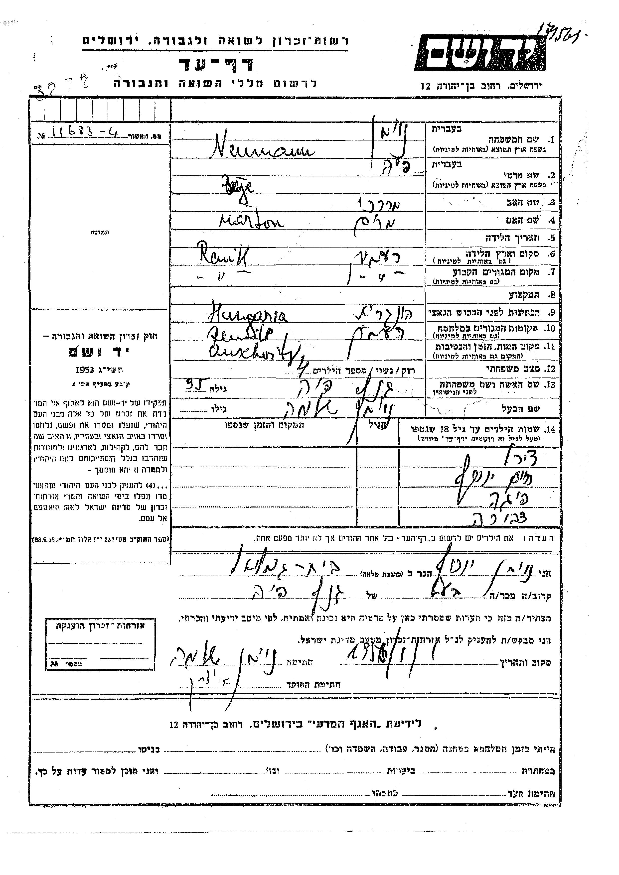 Yad Vashem - Pages of Testimony Names Memorial Collection