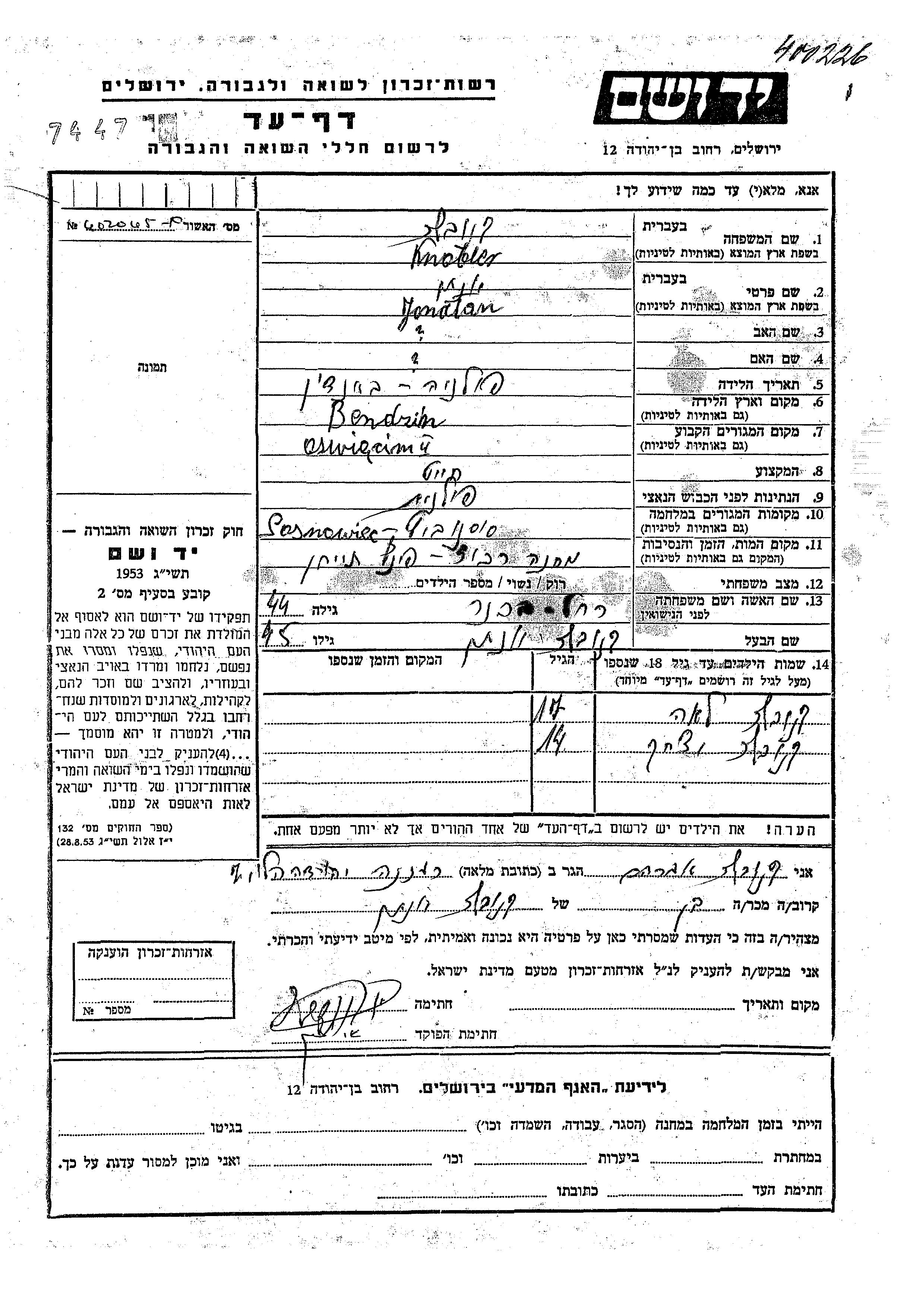 Yad Vashem - Pages of Testimony Names Memorial Collection