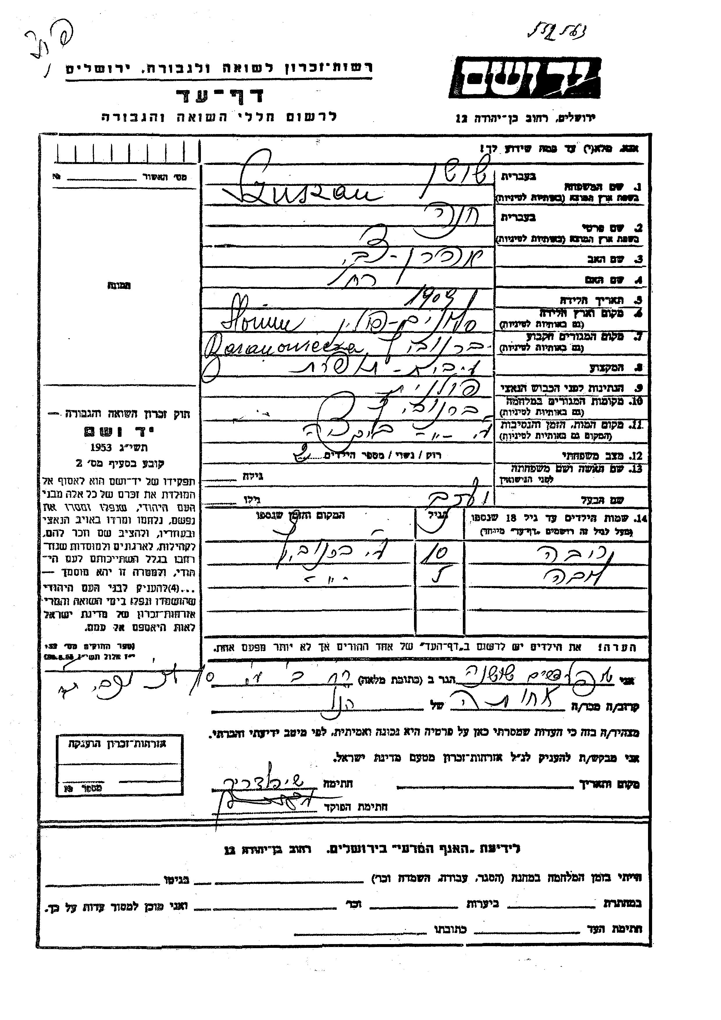 Yad Vashem - Pages of Testimony Names Memorial Collection