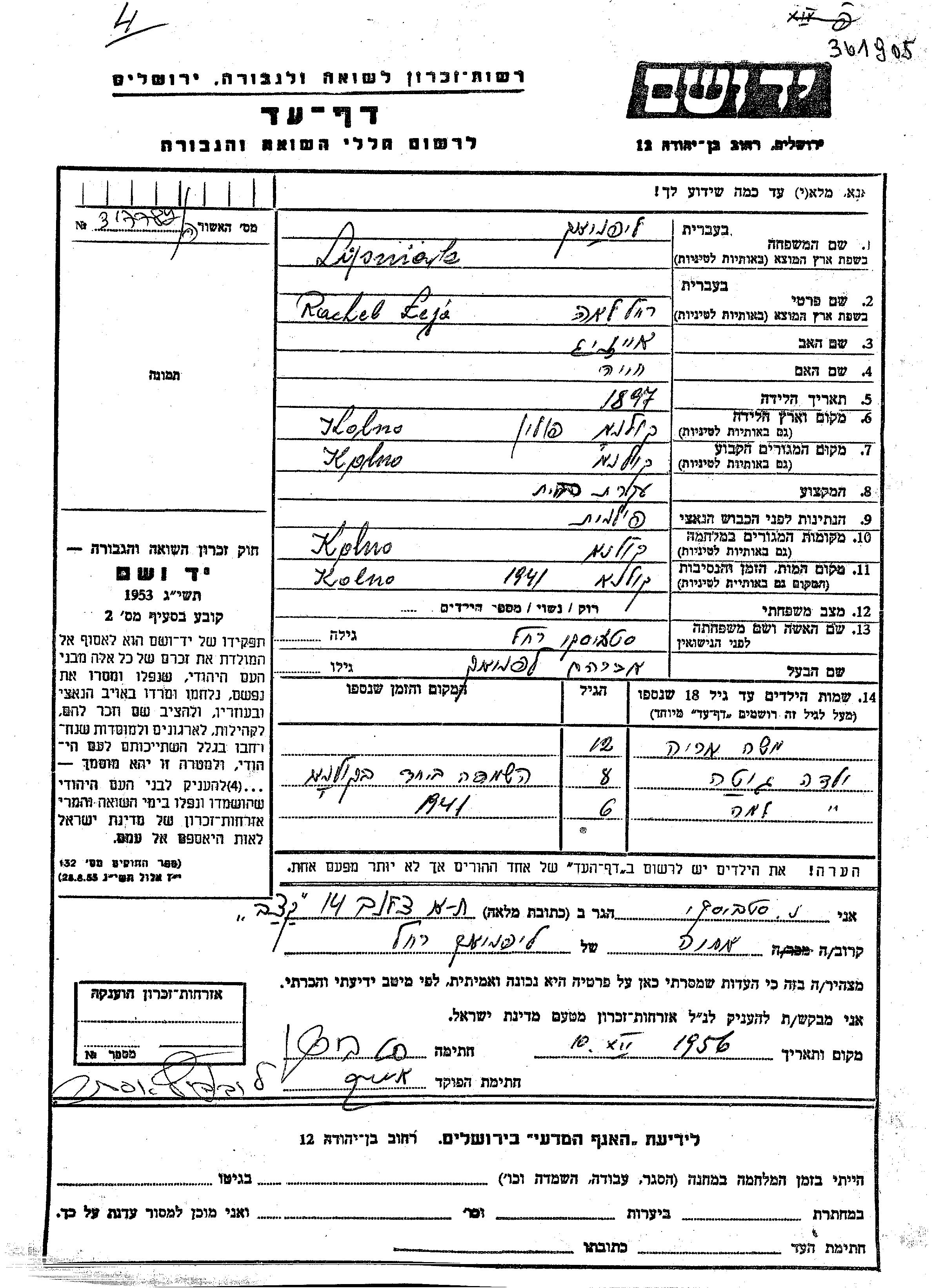 Yad Vashem - Pages of Testimony Names Memorial Collection