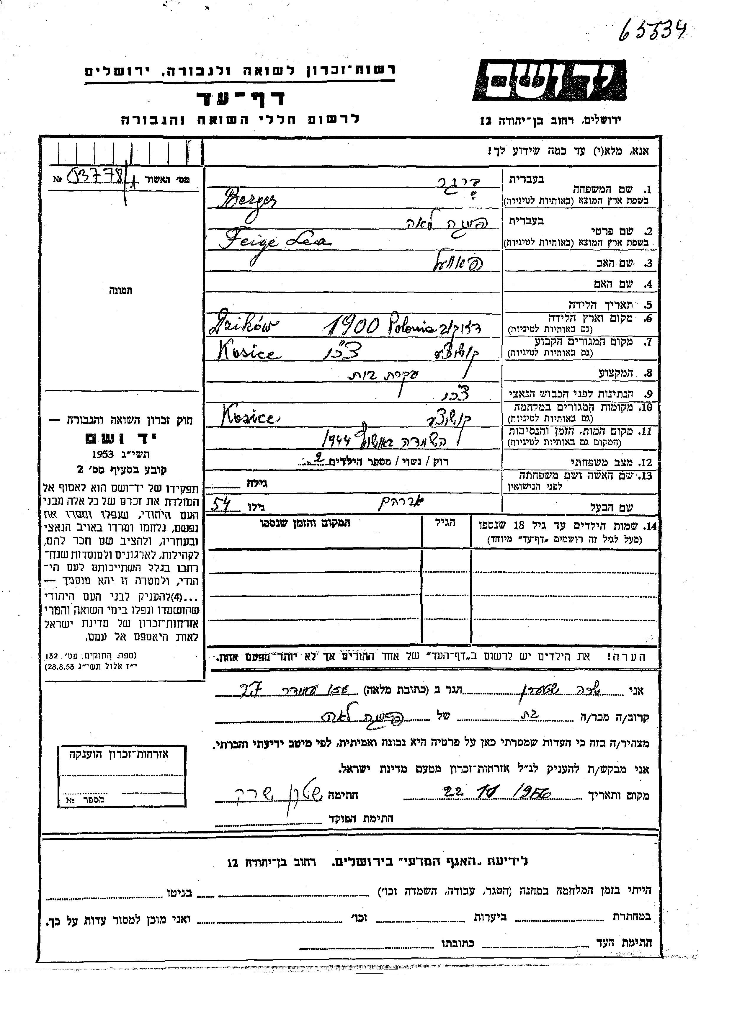 Yad Vashem - Pages of Testimony Names Memorial Collection