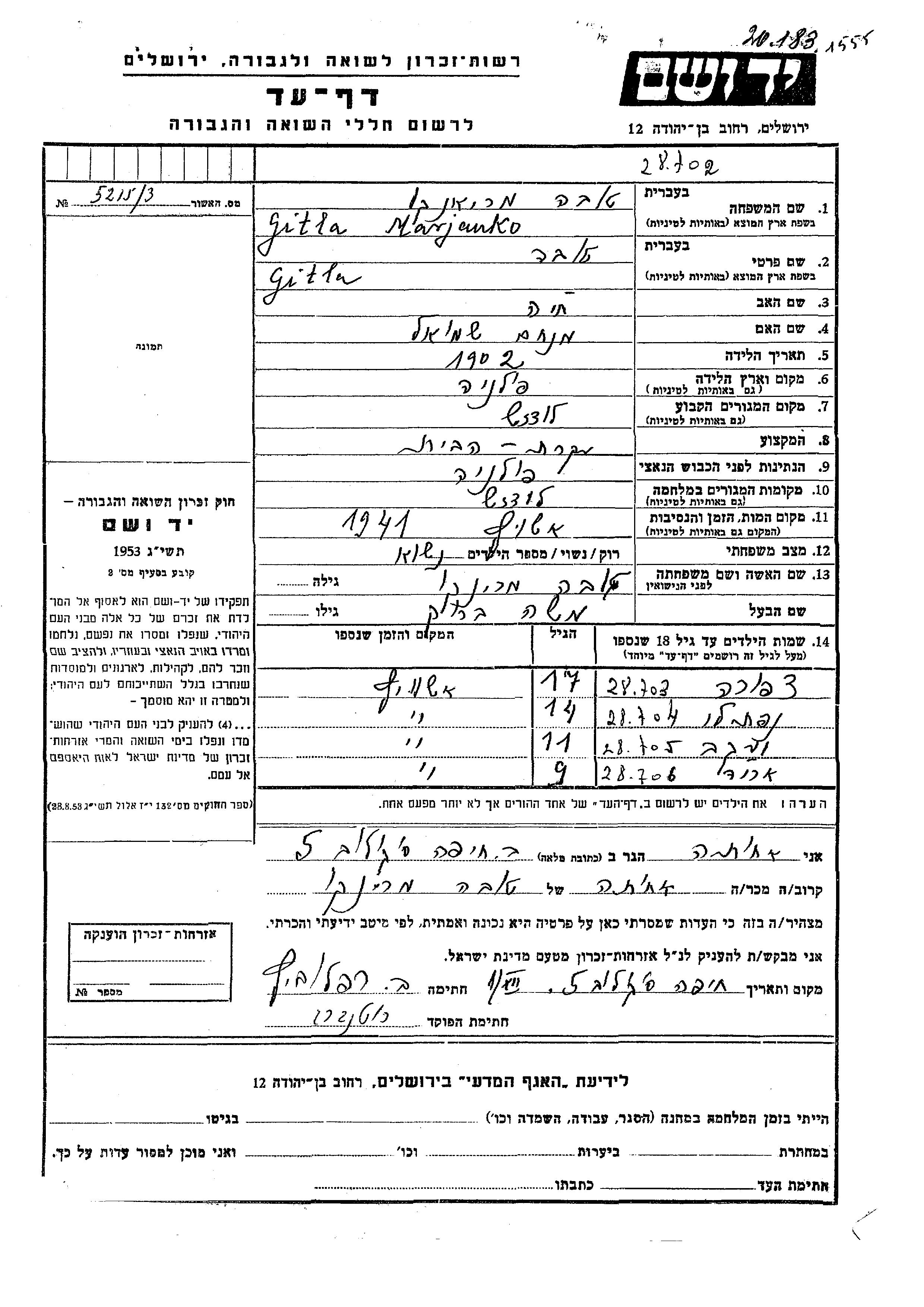 Yad Vashem - Pages of Testimony Names Memorial Collection