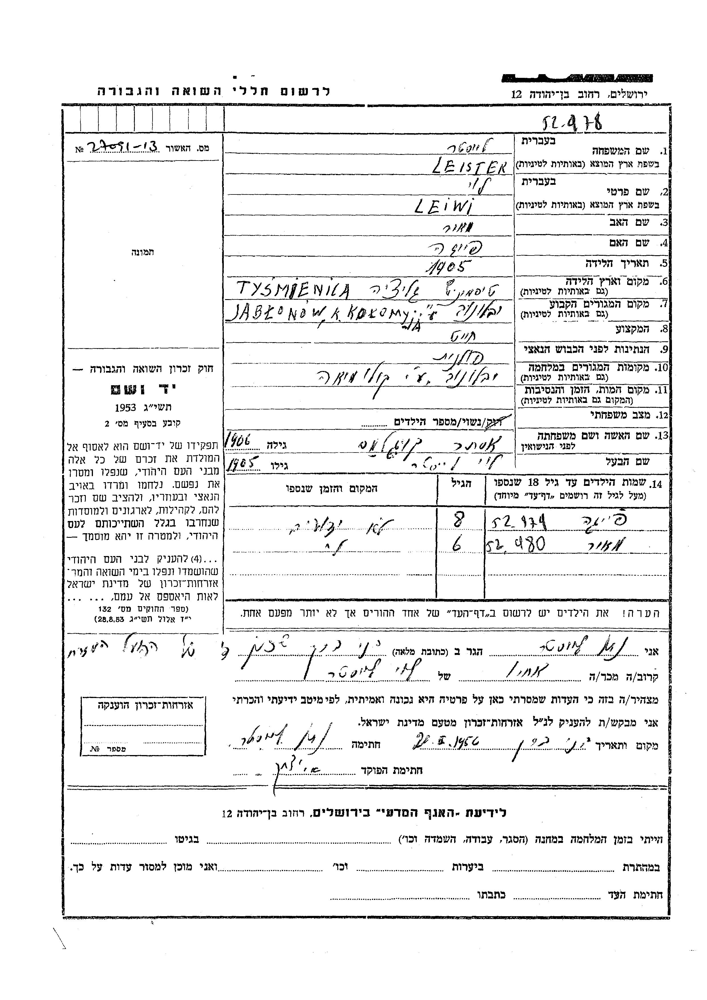 Leister Feiga Jablonow, Pologne Feuille de témoignage