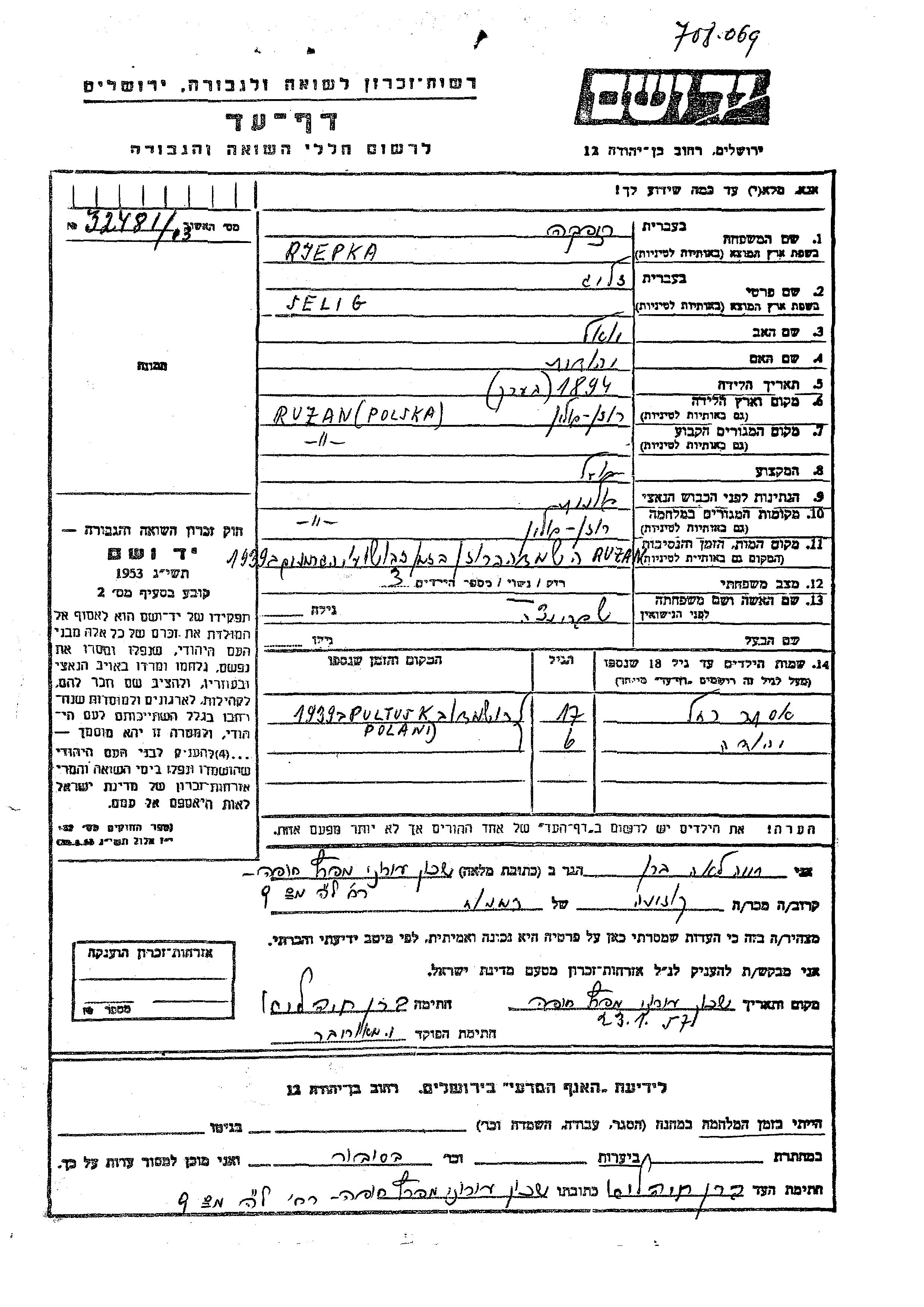 Yad Vashem - Pages of Testimony Names Memorial Collection