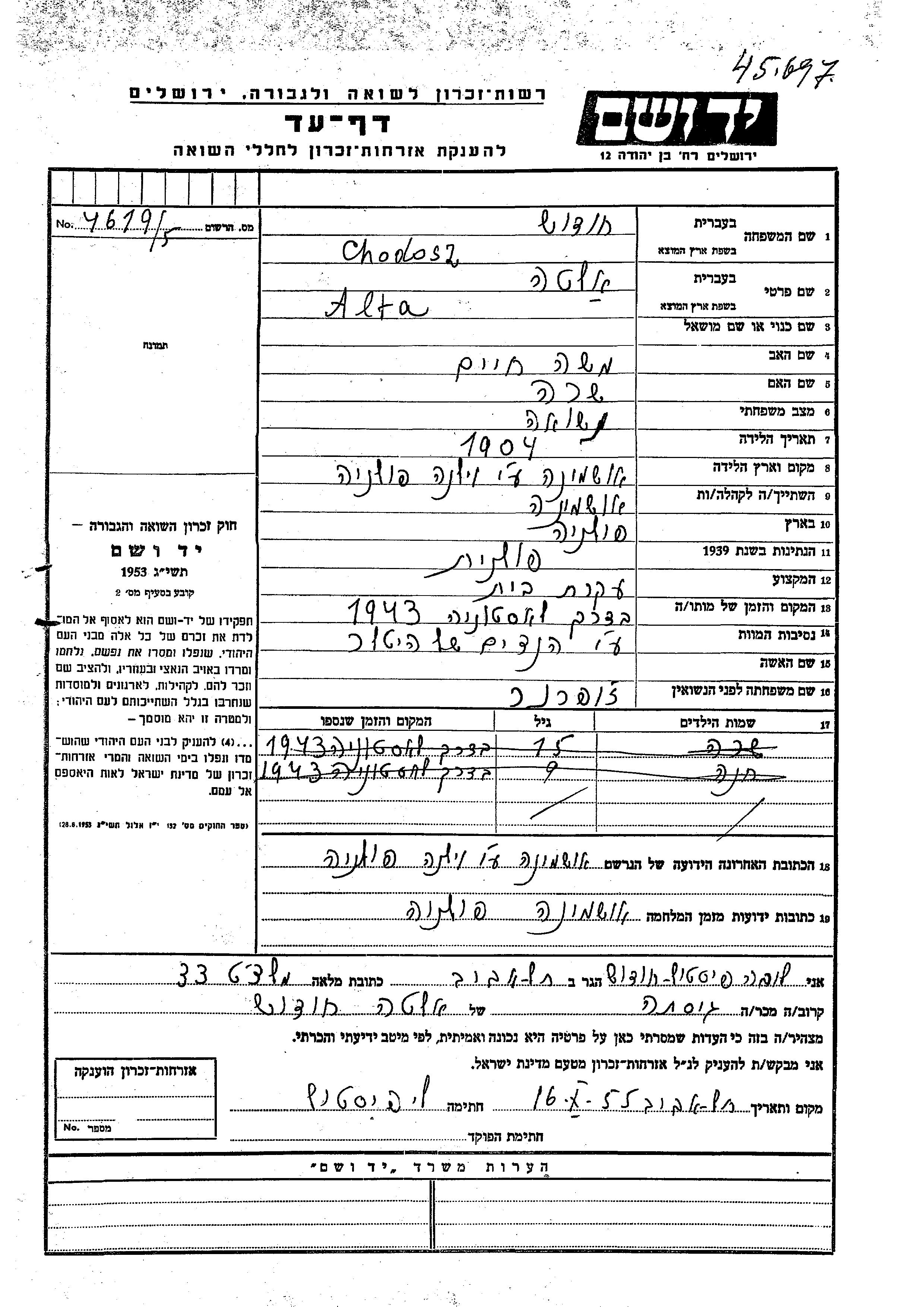 Yad Vashem - Pages of Testimony Names Memorial Collection