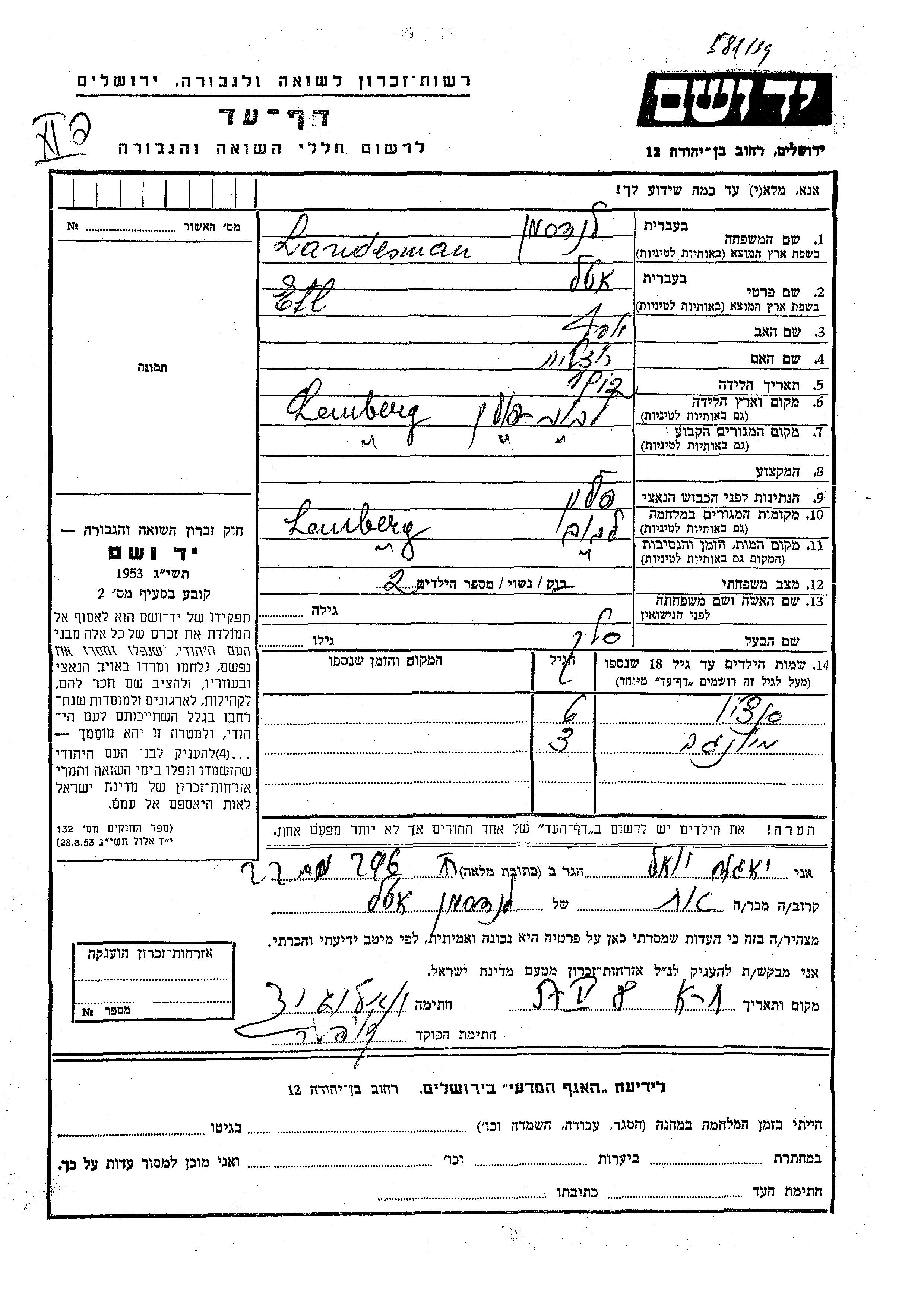 Milanga Landesman est né fils de Salek et de Etl. Il était Enfant. Avant la seconde guerre mondiale il vivait à Lwow, Pologne. Au cours de la guerre, il était à Lwow, Pologne.