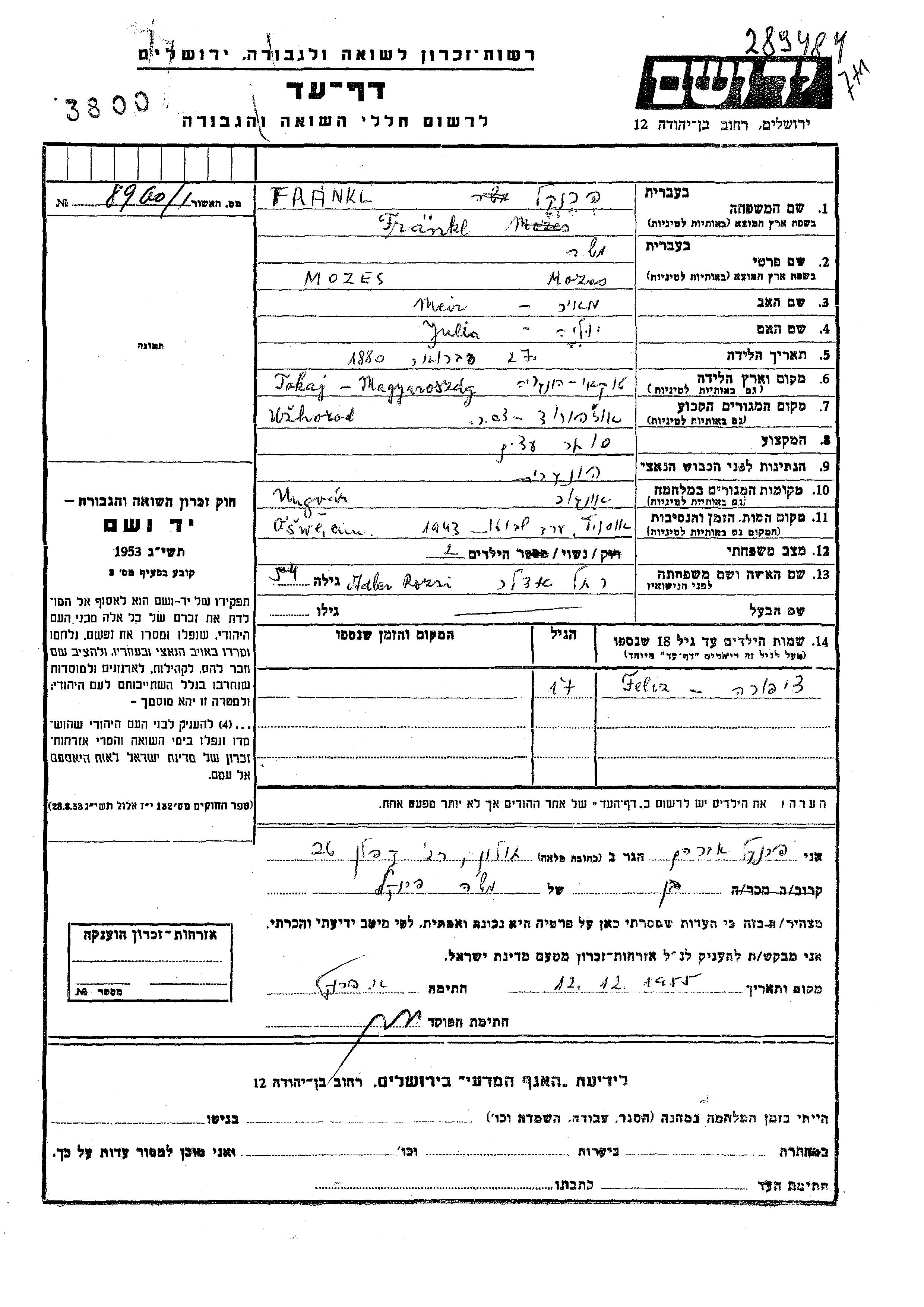 Yad Vashem - Pages of Testimony Names Memorial Collection