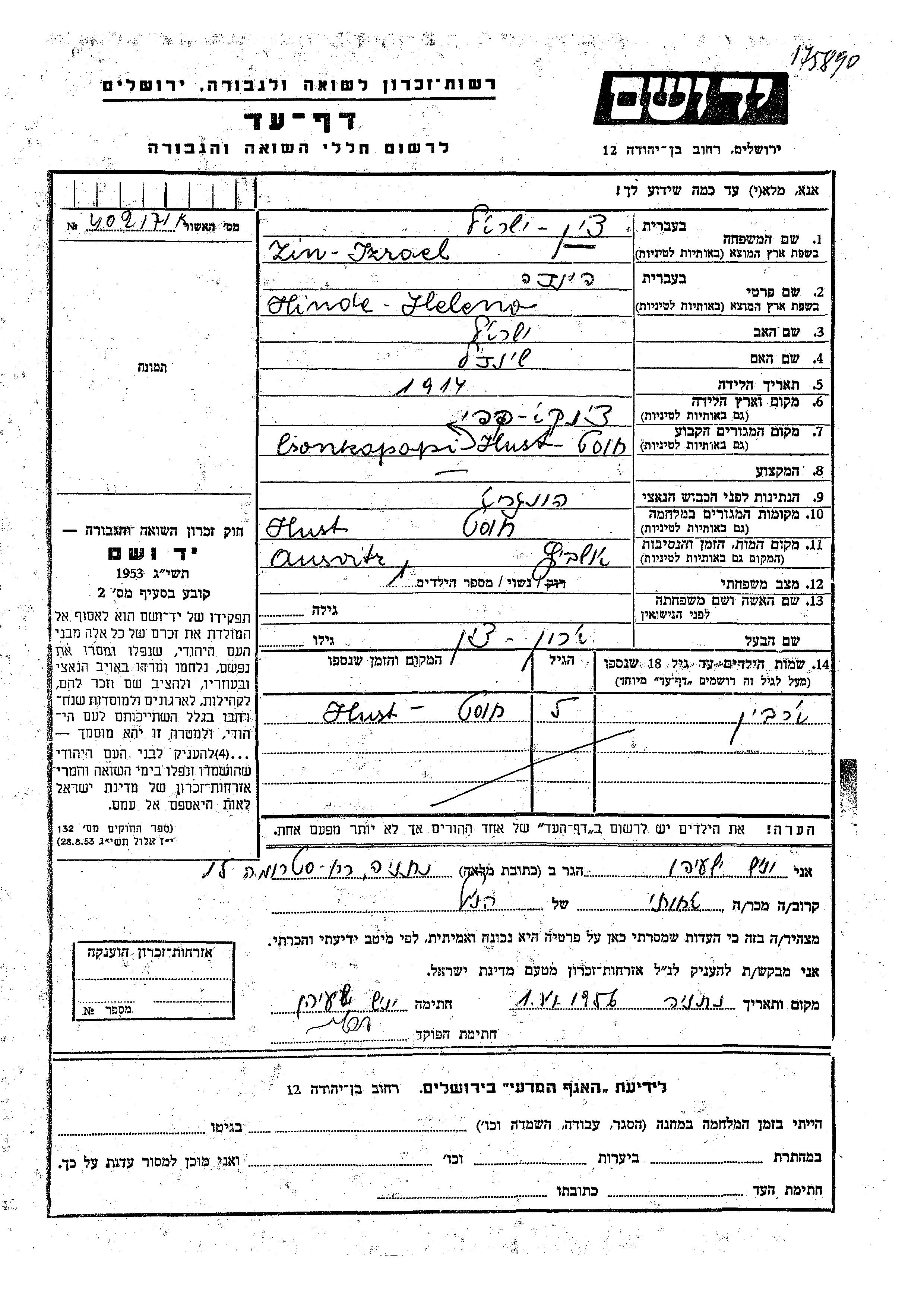 Yad Vashem - Pages of Testimony Names Memorial Collection