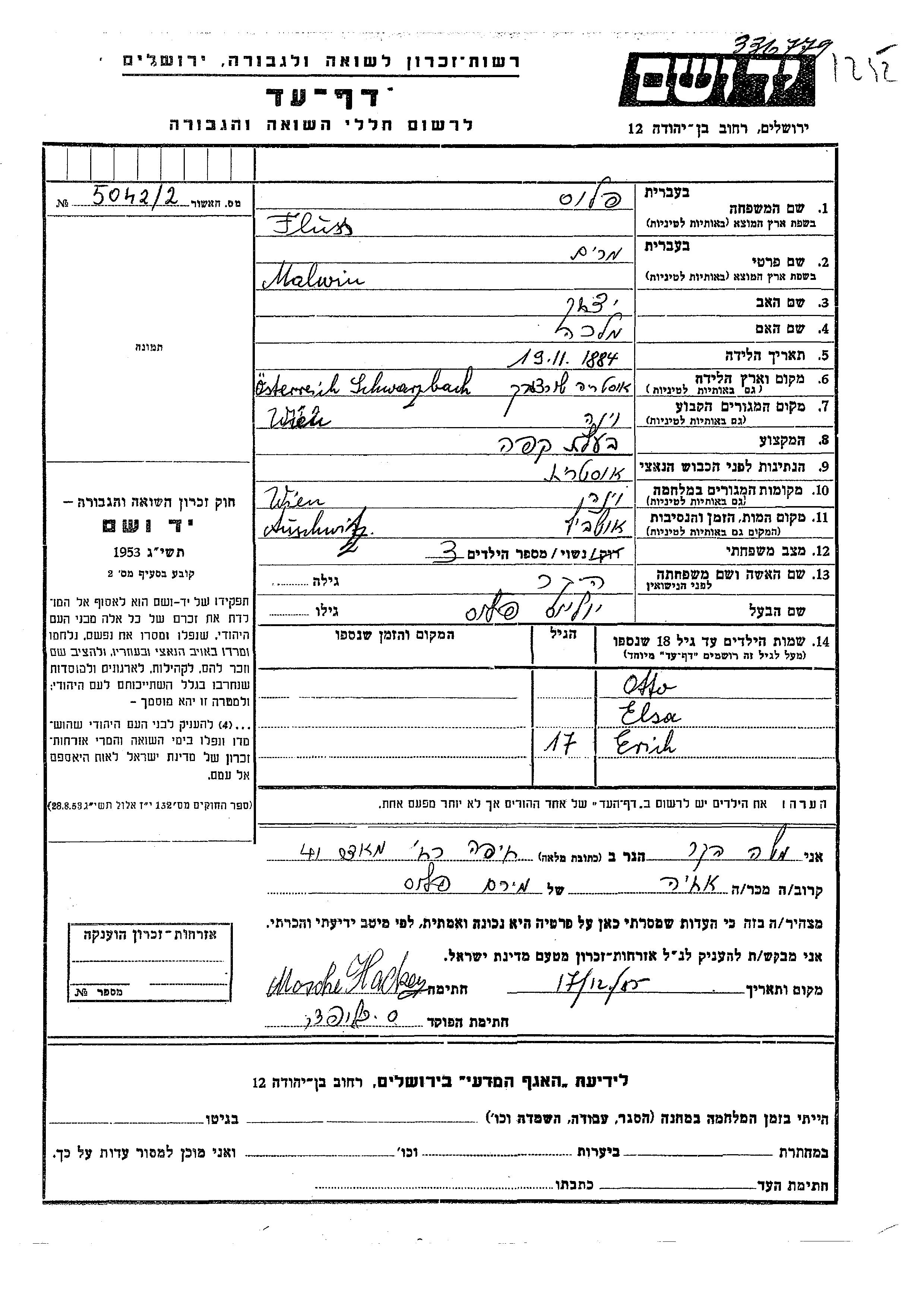 Yad Vashem - Pages of Testimony Names Memorial Collection