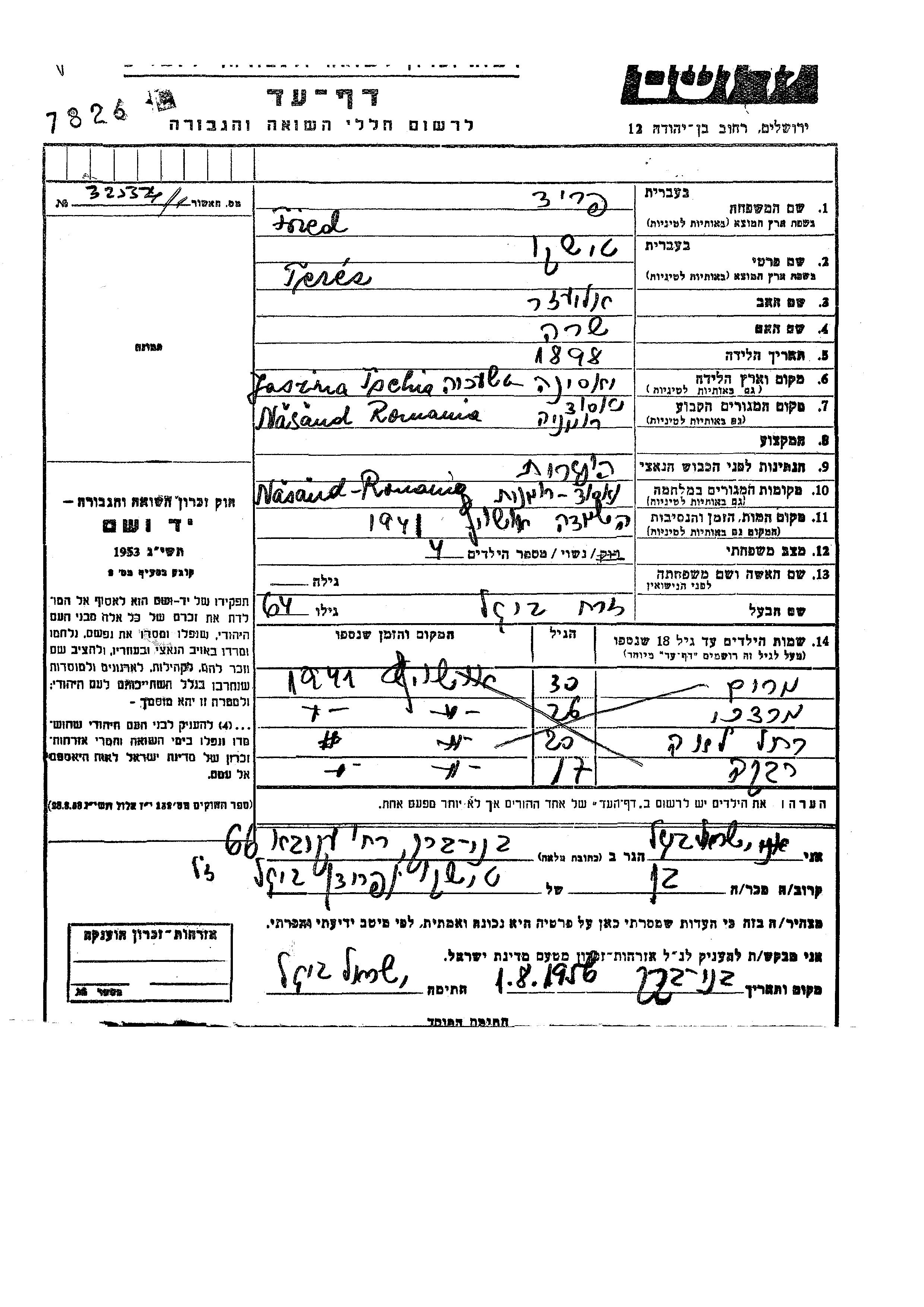 Bigel Miriam Nasaud, Roumanie Feuille de témoignage