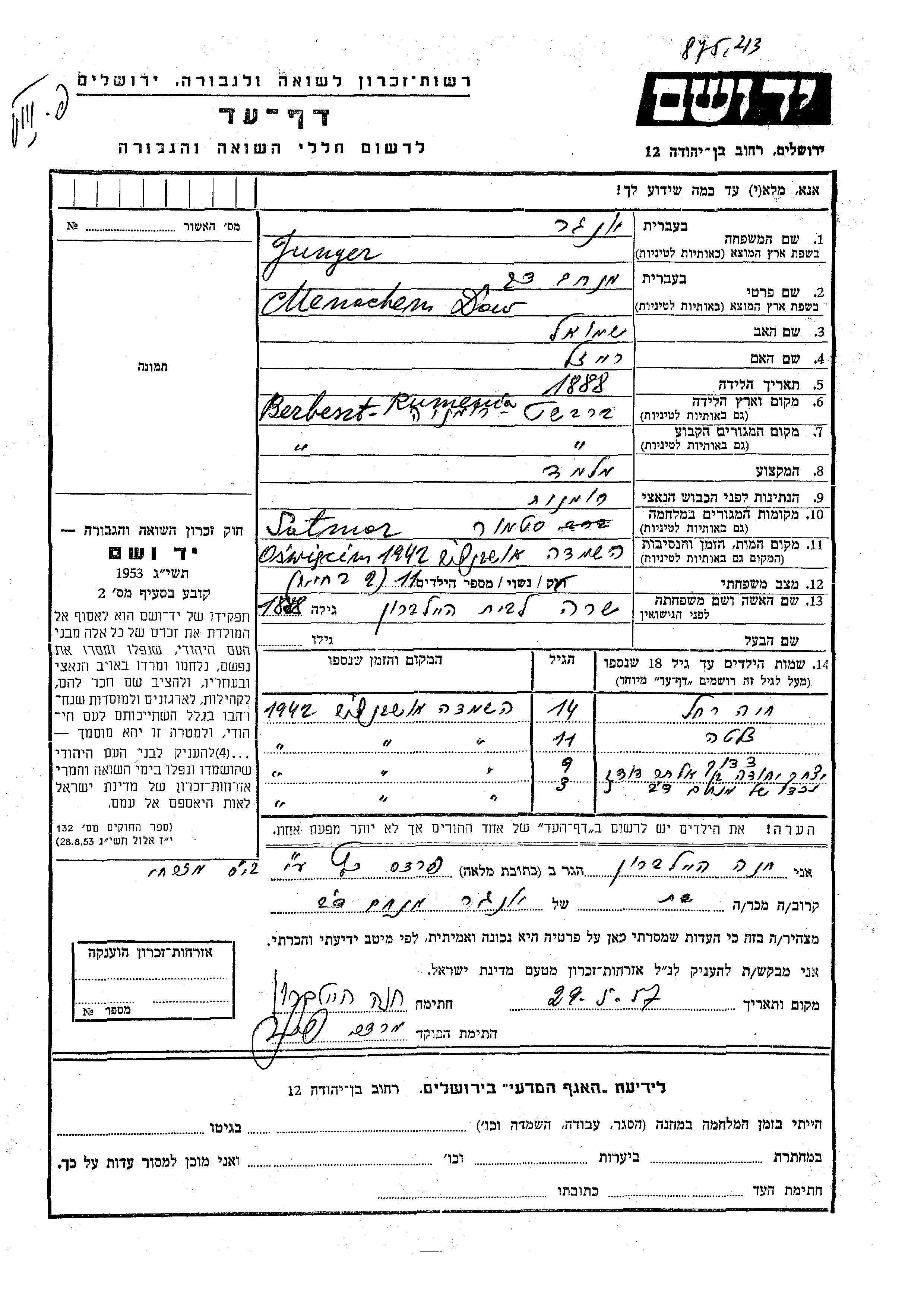 Yad Vashem - Pages of Testimony Names Memorial Collection