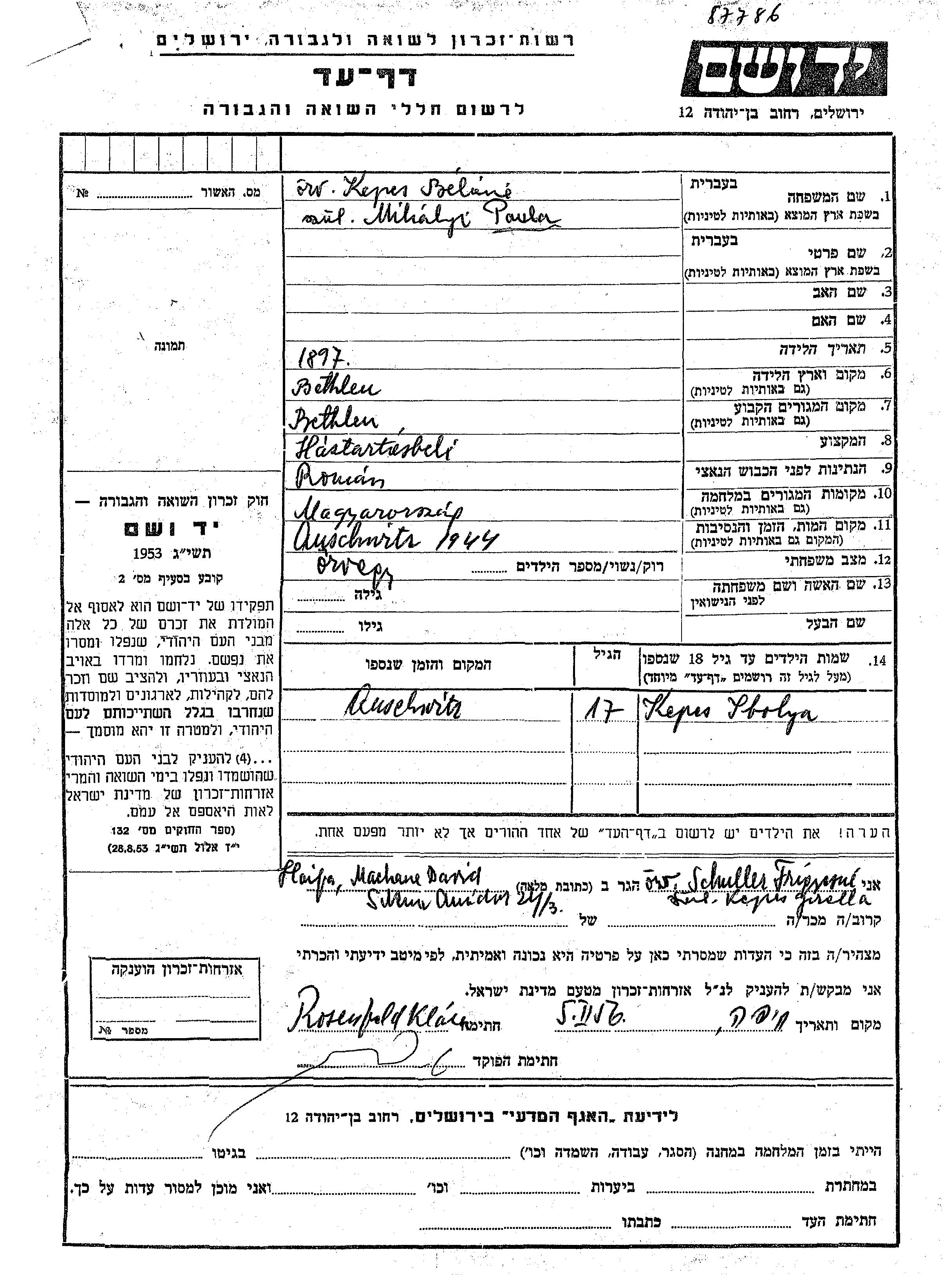 Yad Vashem - Pages of Testimony Names Memorial Collection