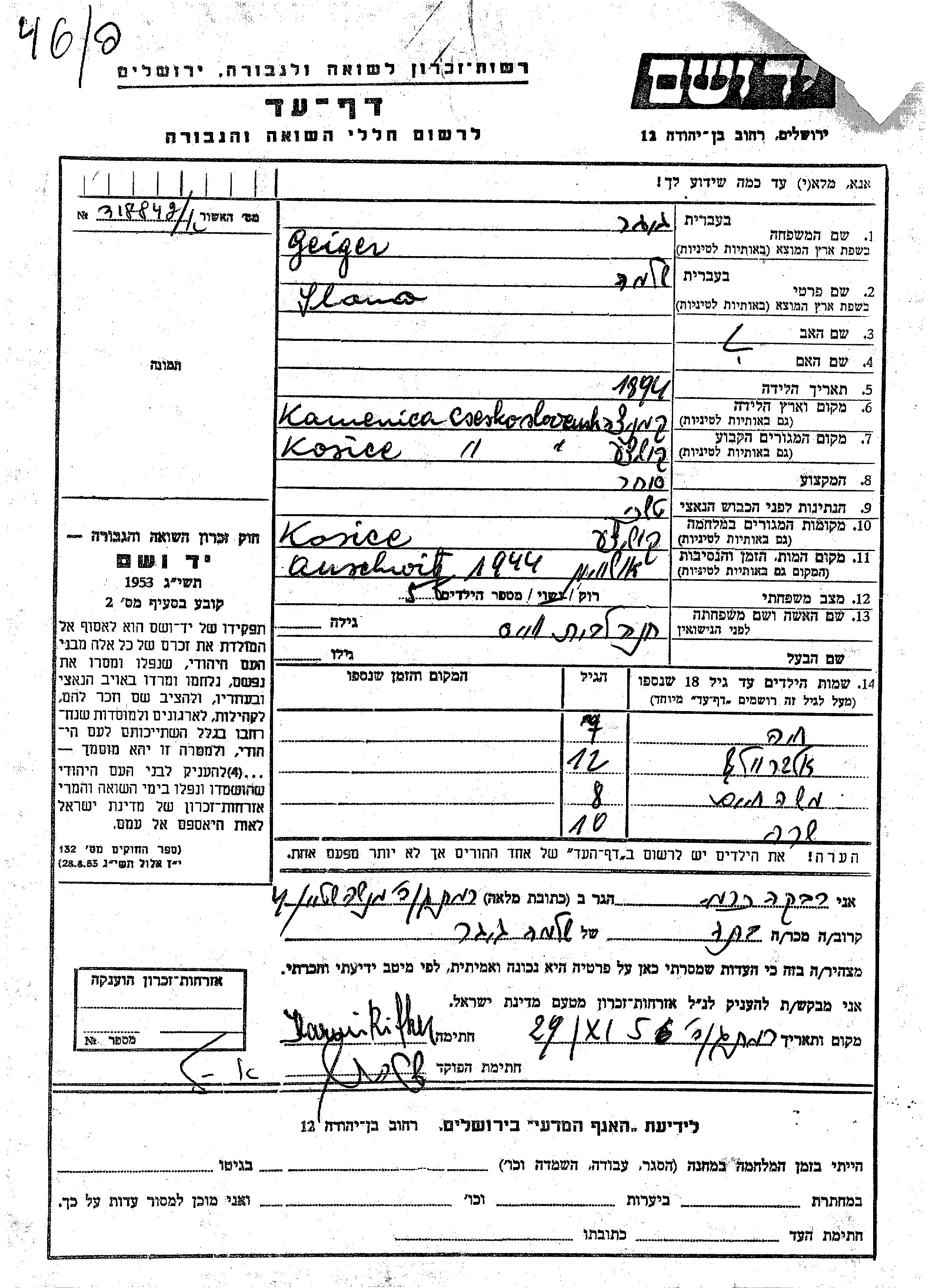 Geiger Chaia Kashoy, Tchécoslovaquie Enregistrement de personnes assassinées