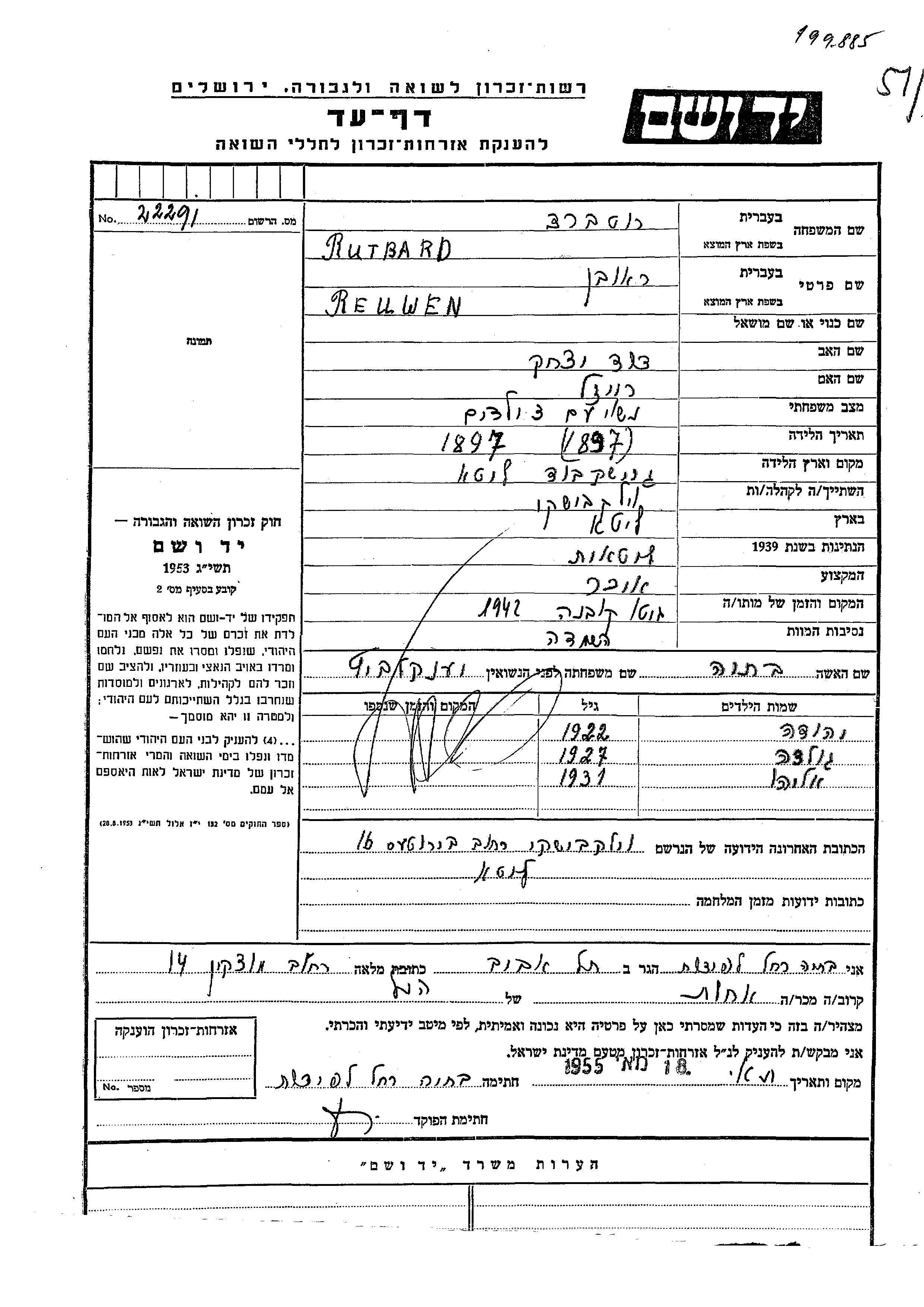 Rutbard Golda 1927 Vilkaviškis, Lituanie Feuille de témoignage