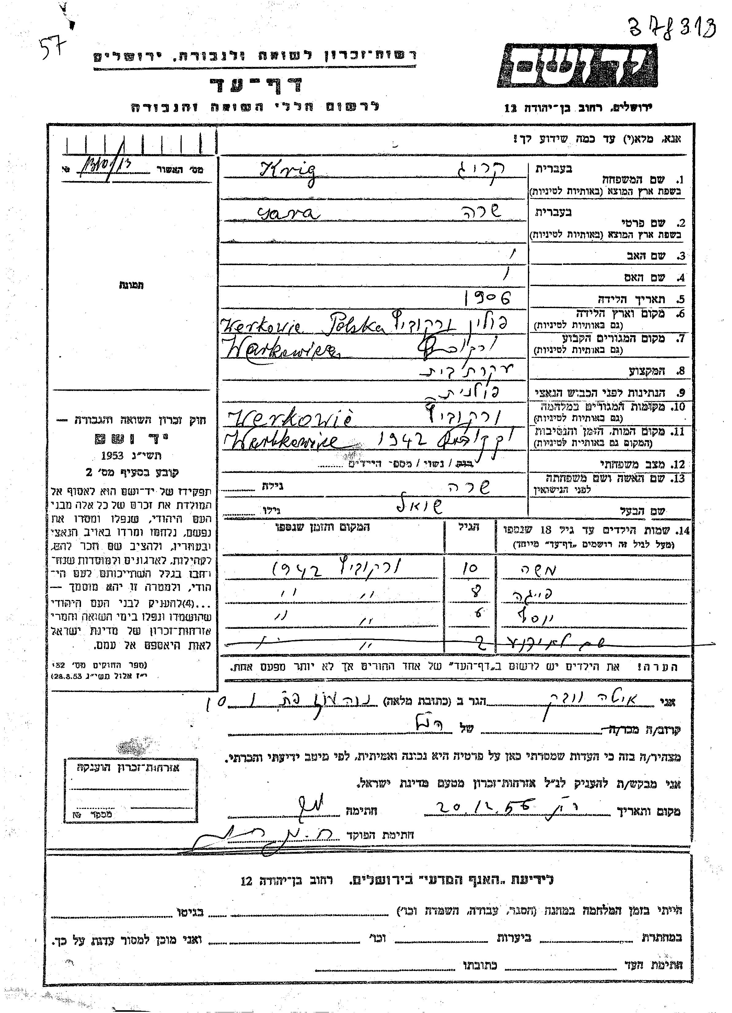 Krig Yosef Warkowicze, Pologne Feuille de témoignage