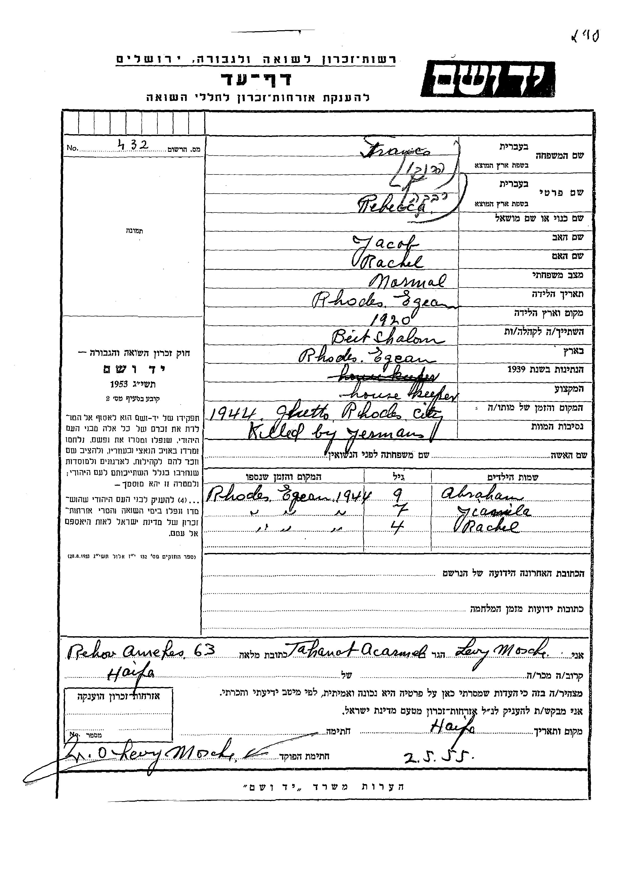 Yad Vashem - Pages of Testimony Names Memorial Collection