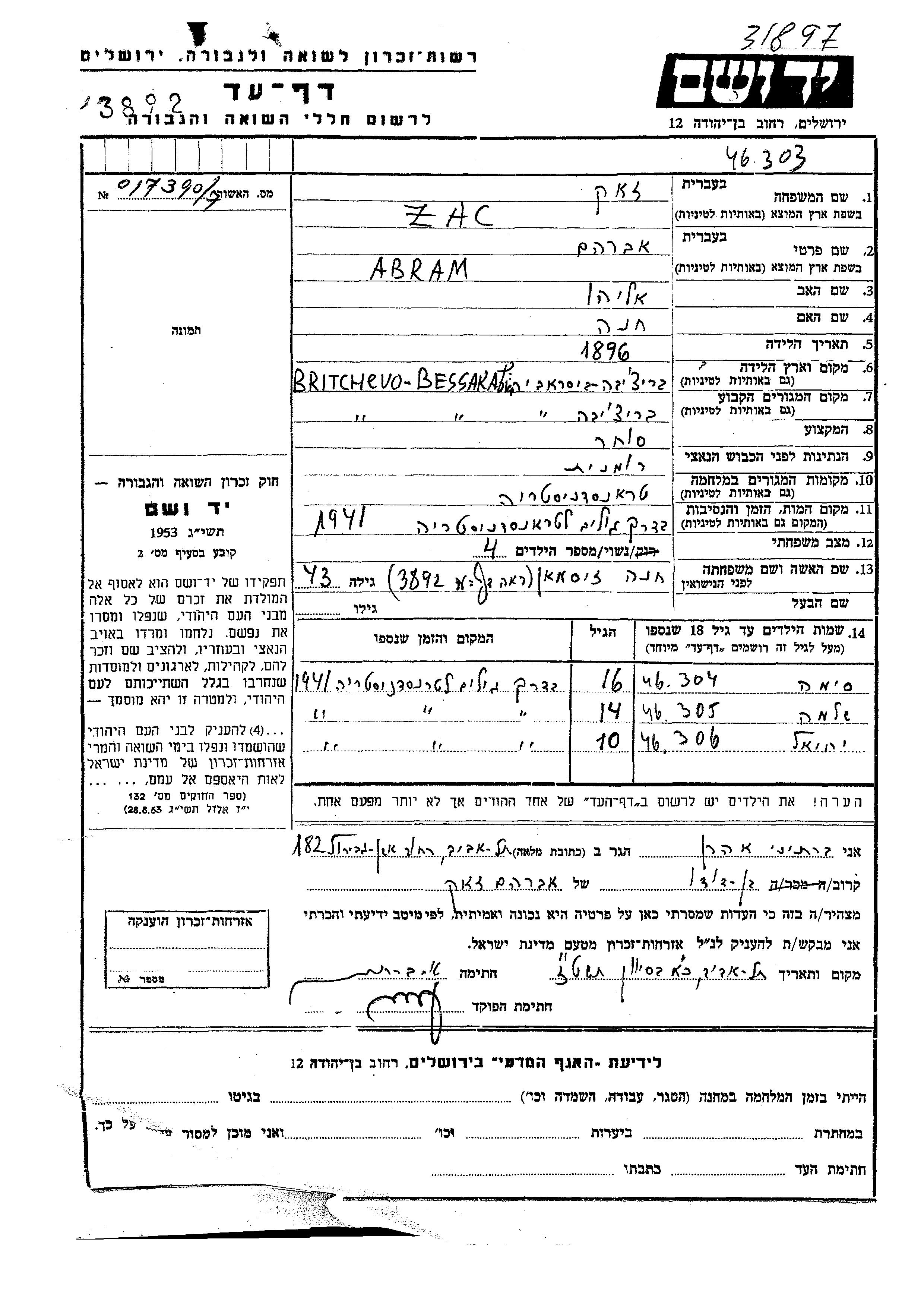 Recherche par lieu de résidence permanente avant la Shoah, ville, village, département, région ou pays.