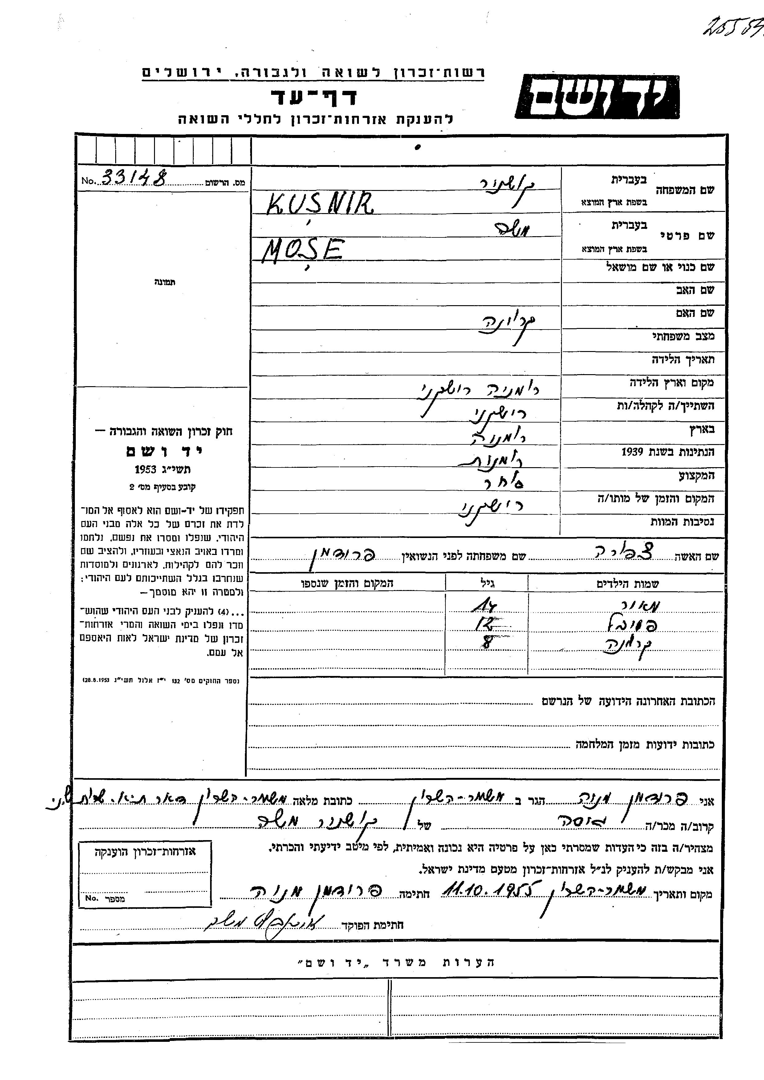 Yad Vashem - Pages of Testimony Names Memorial Collection