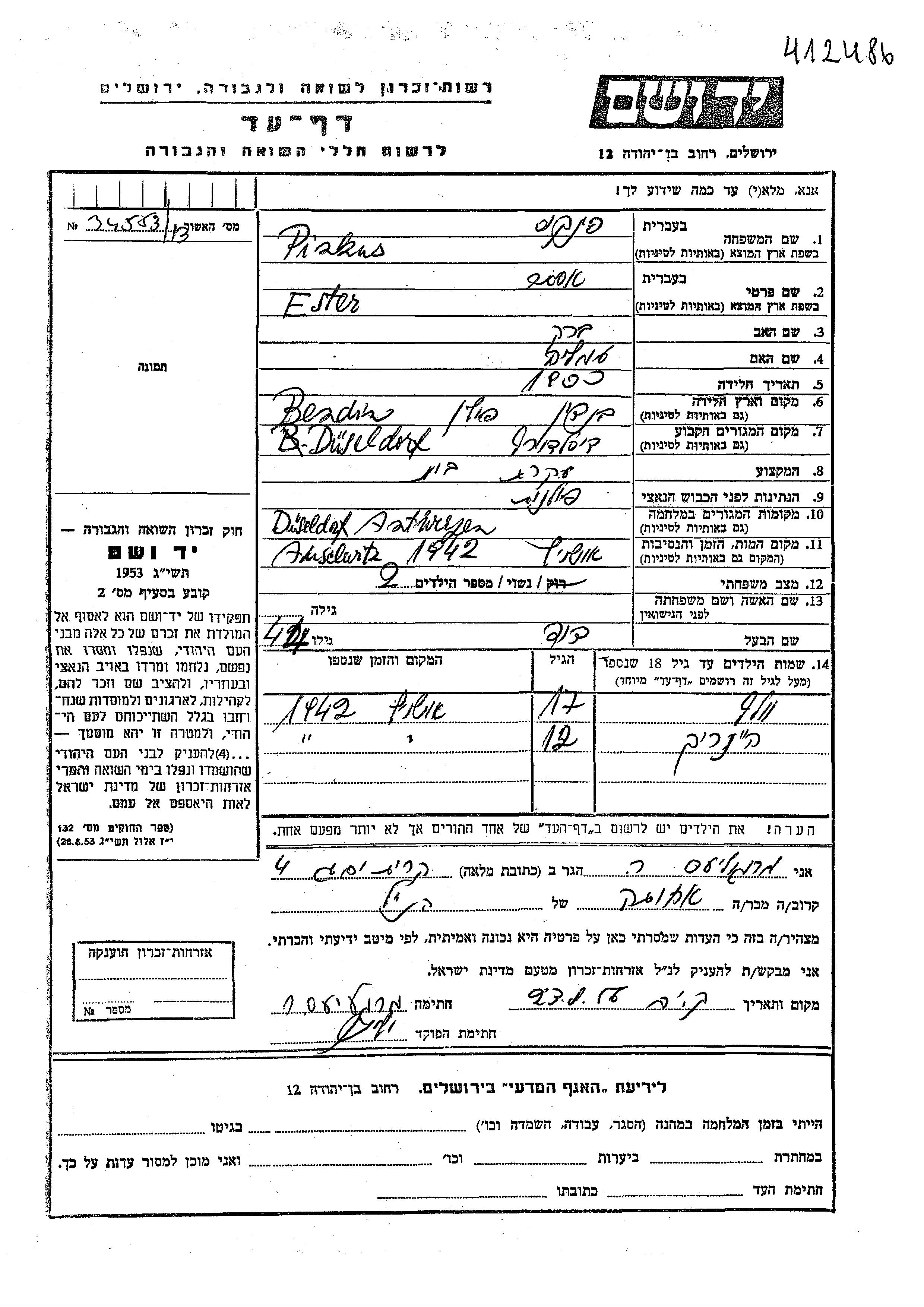 Yad Vashem - Pages of Testimony Names Memorial Collection