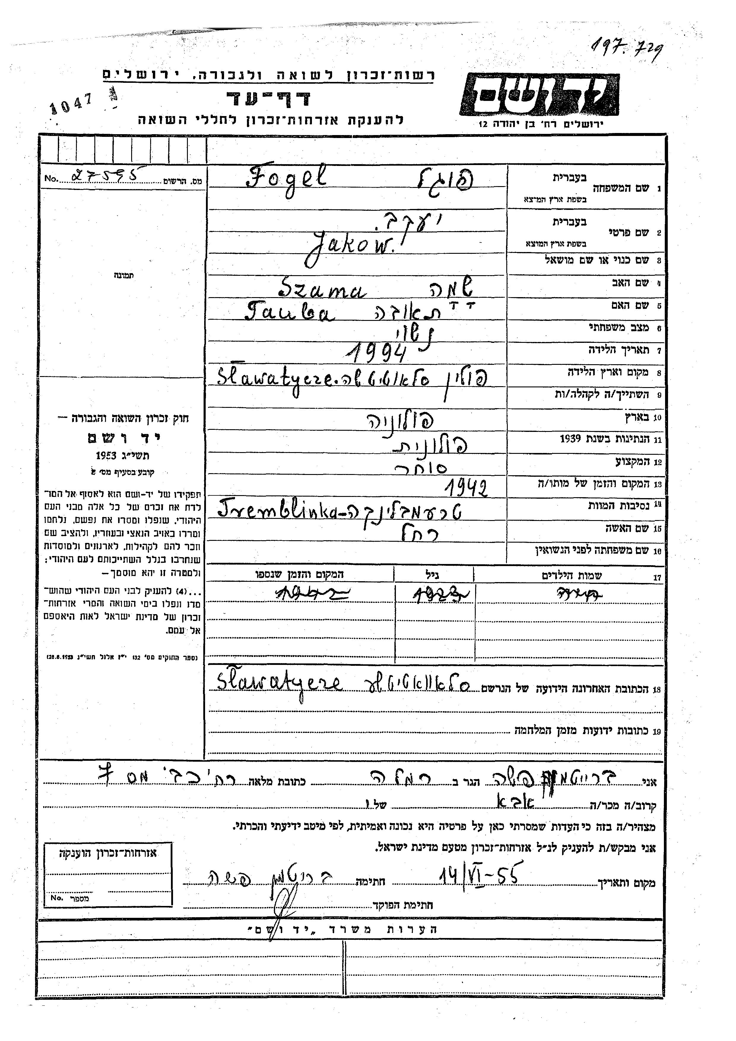 Yad Vashem - Pages of Testimony Names Memorial Collection