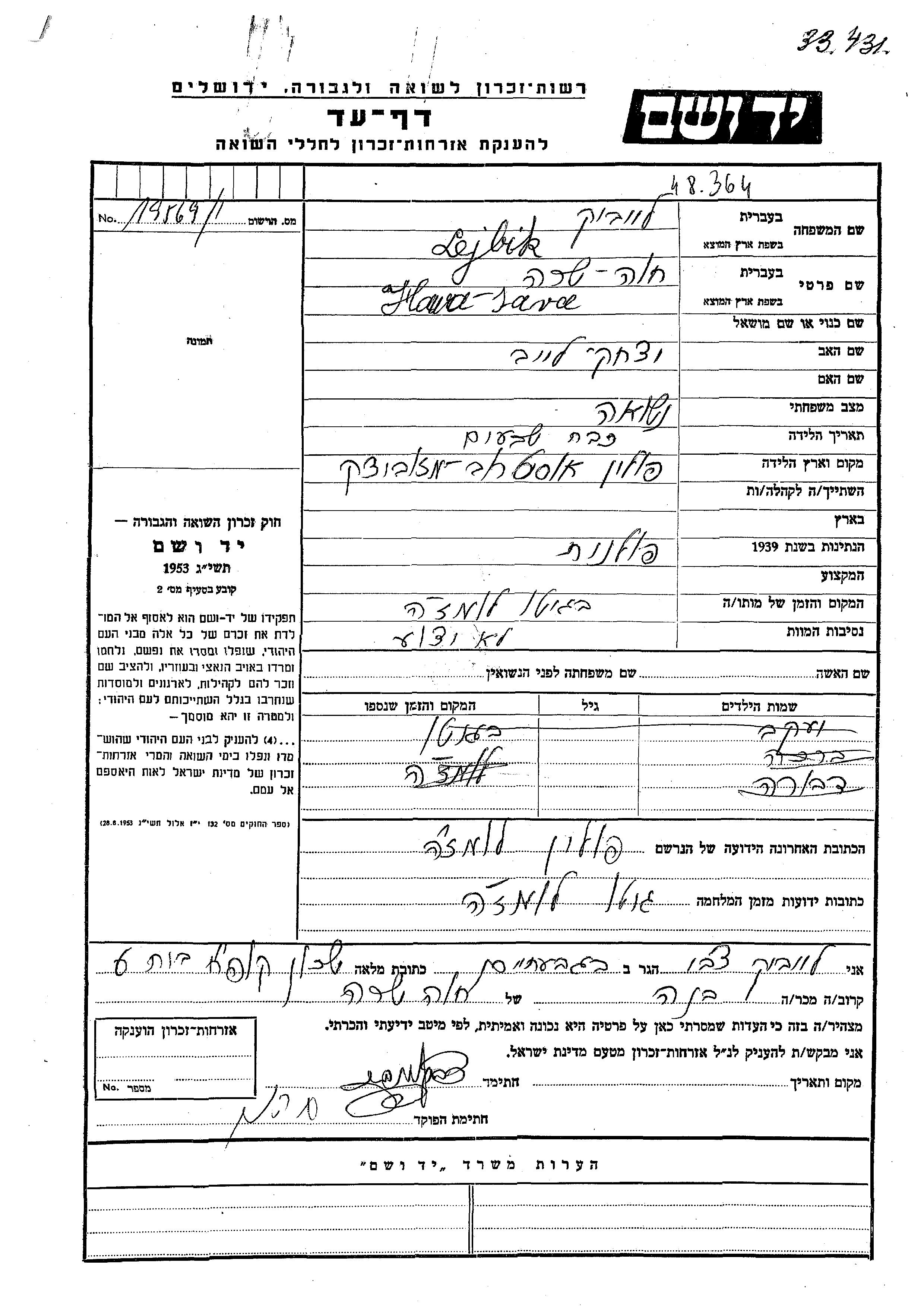 Yad Vashem - Pages of Testimony Names Memorial Collection
