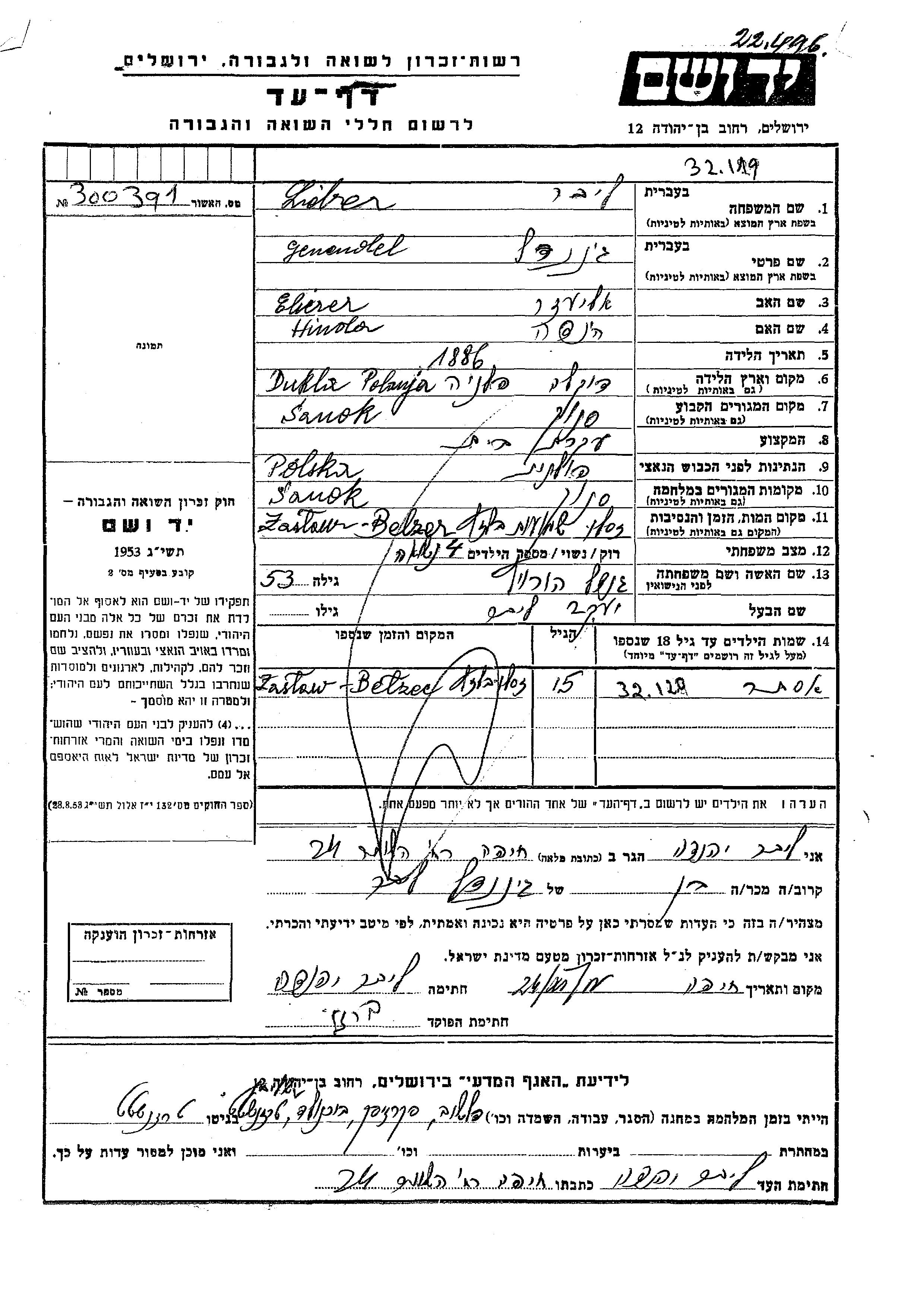 Yad Vashem - Pages of Testimony Names Memorial Collection