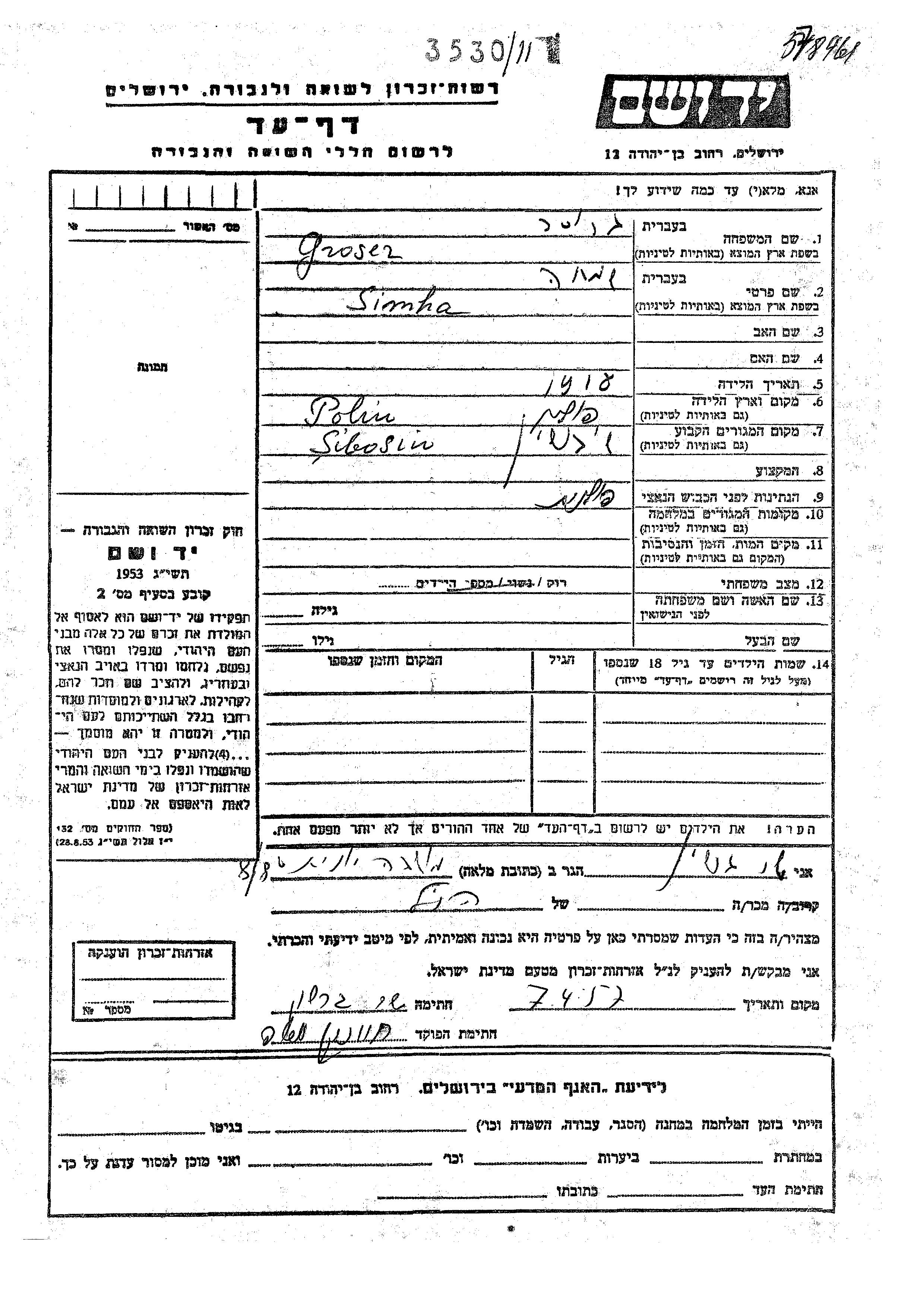 Yad Vashem - Pages of Testimony Names Memorial Collection