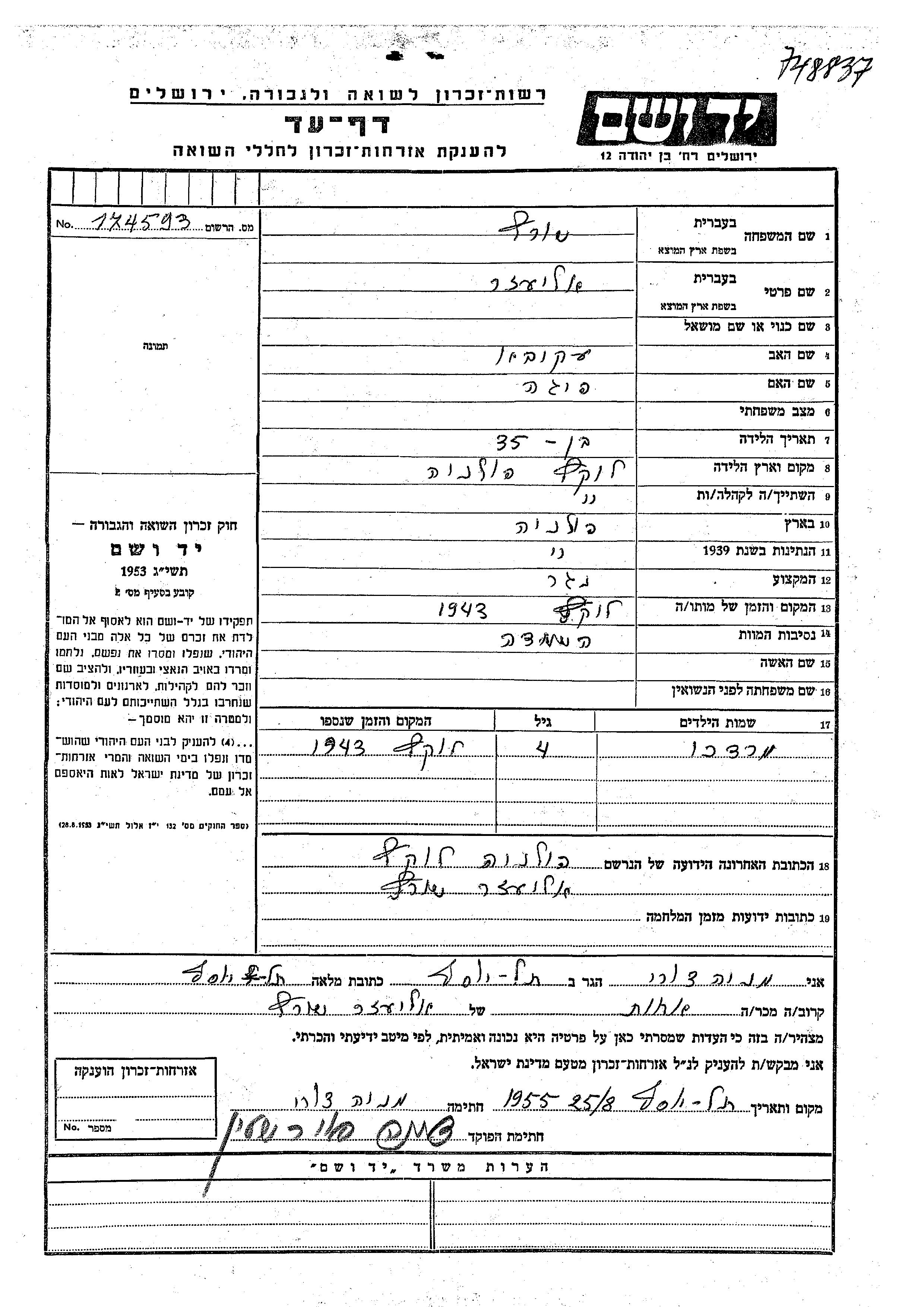 Yad Vashem - Pages of Testimony Names Memorial Collection