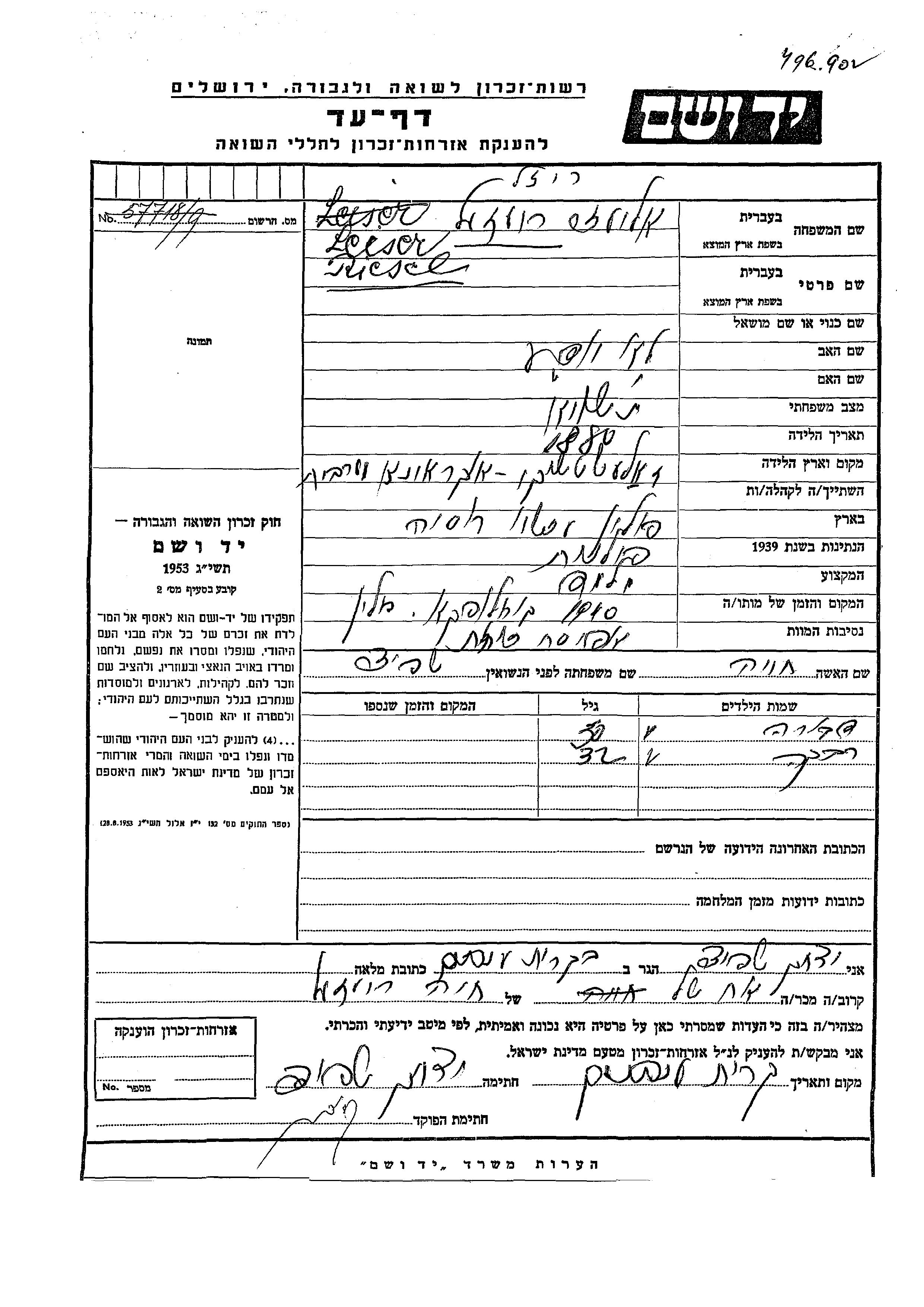 Yad Vashem - Pages of Testimony Names Memorial Collection