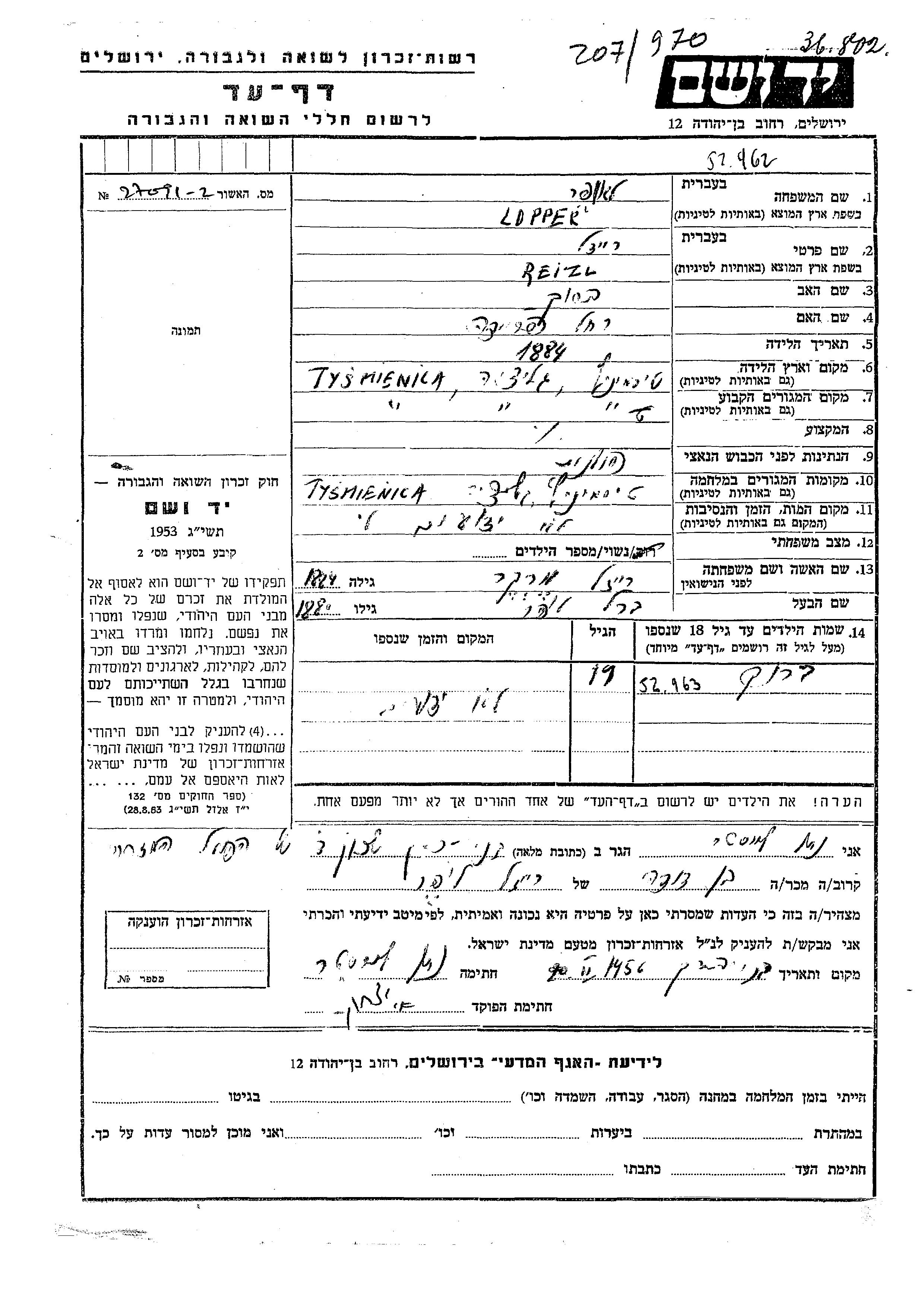 Yad Vashem - Pages of Testimony Names Memorial Collection