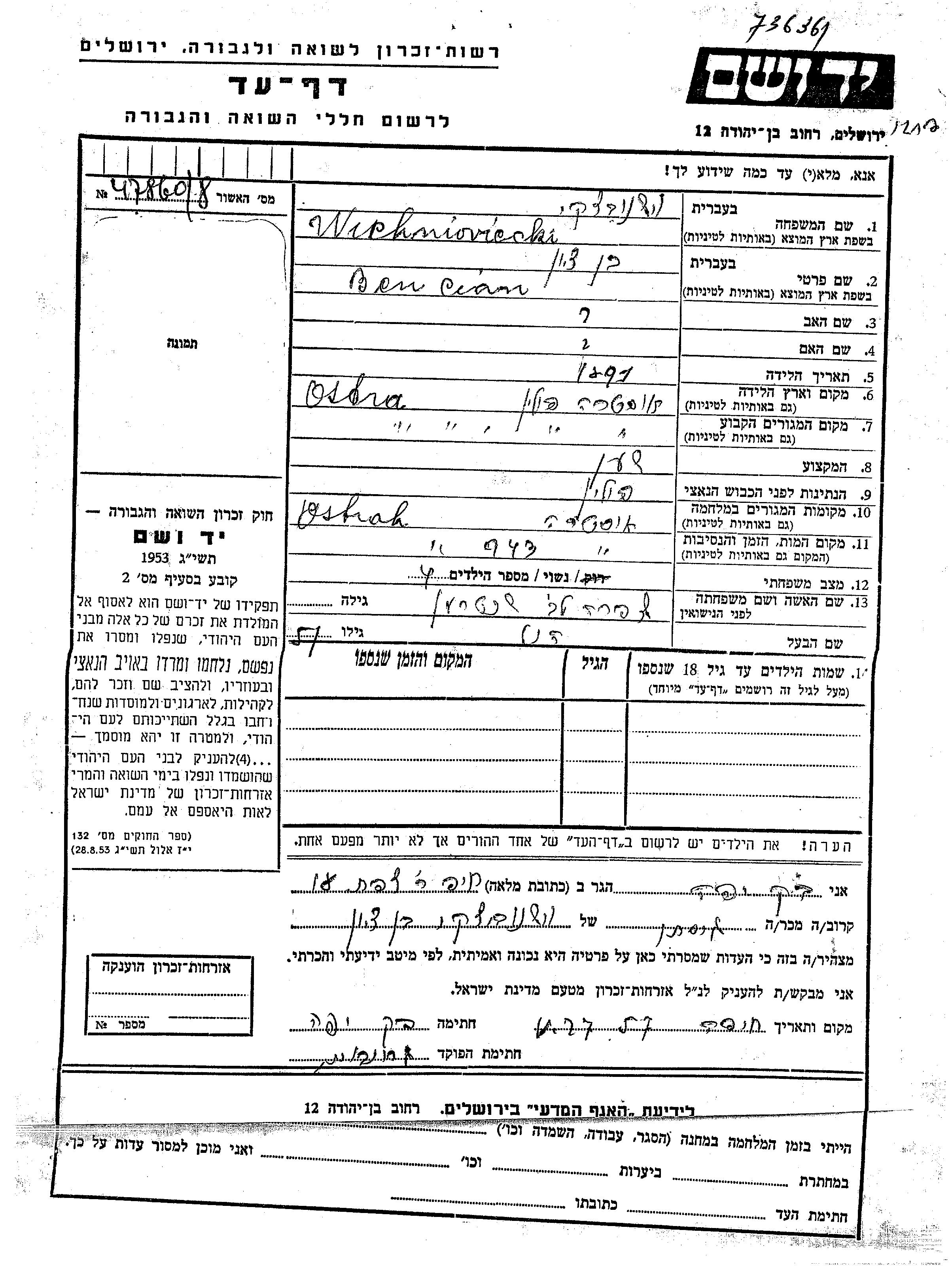 Yad Vashem - Pages of Testimony Names Memorial Collection