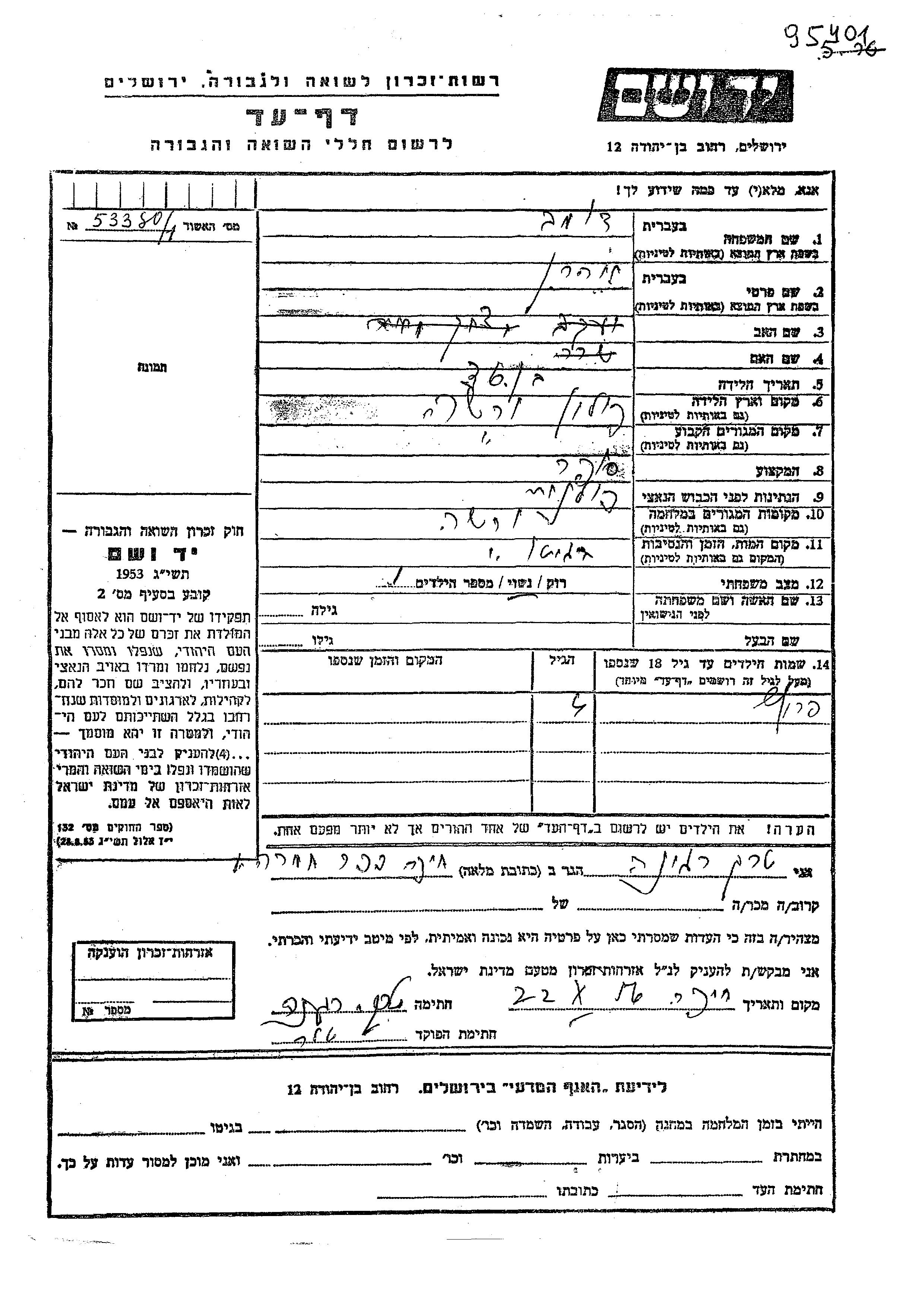 Yad Vashem - Pages of Testimony Names Memorial Collection