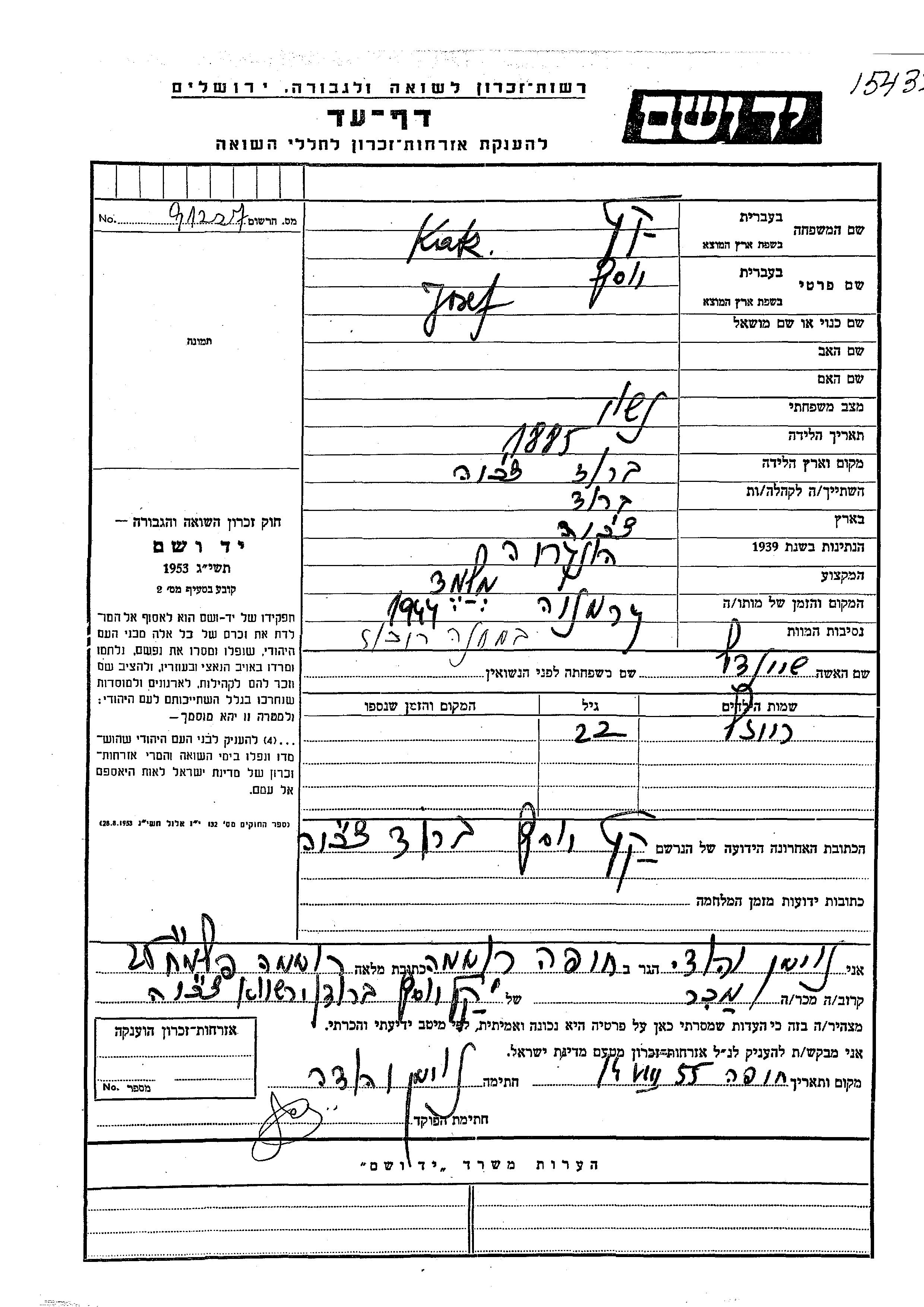 Yad Vashem - Pages of Testimony Names Memorial Collection
