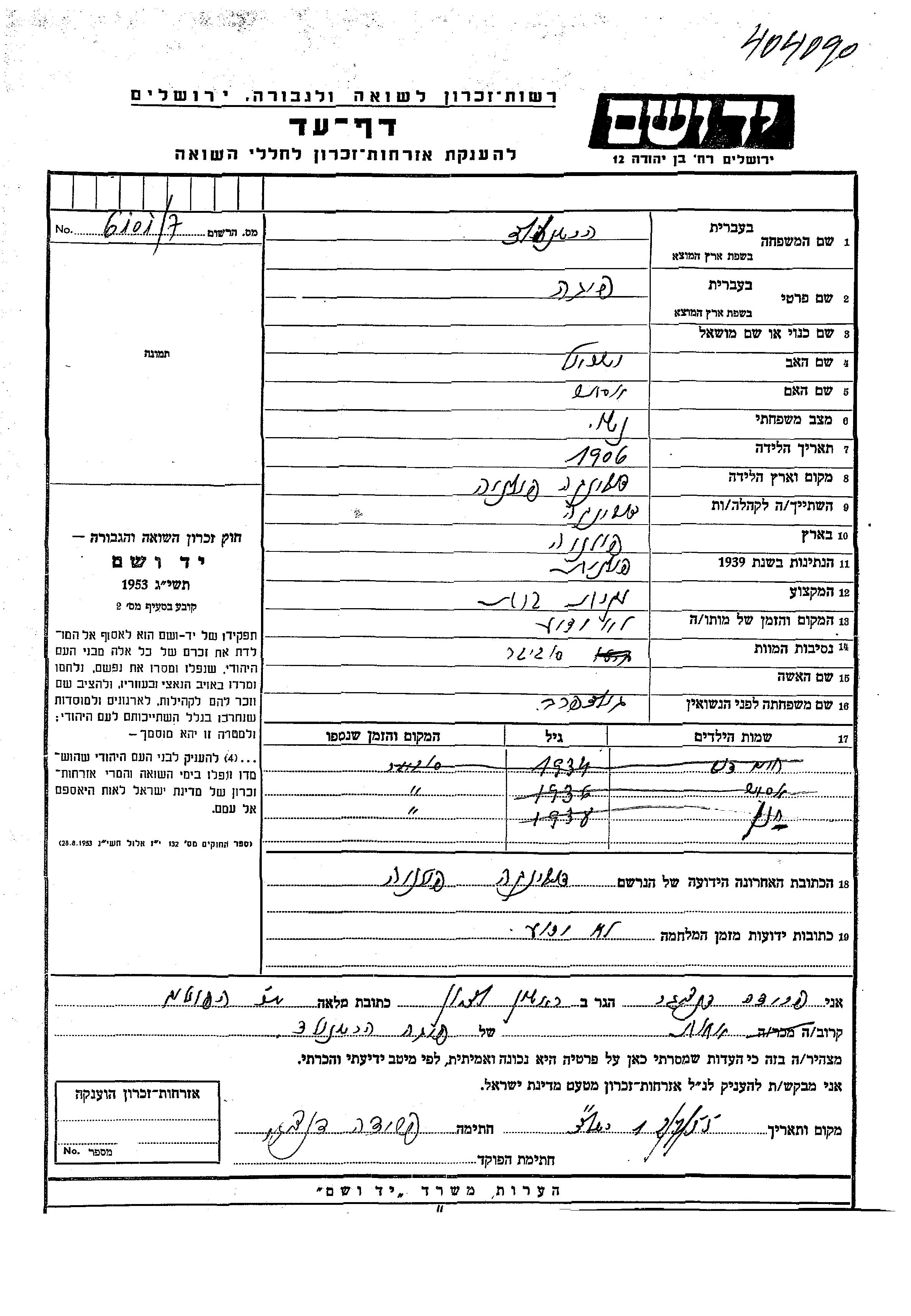 Yad Vashem - Pages of Testimony Names Memorial Collection