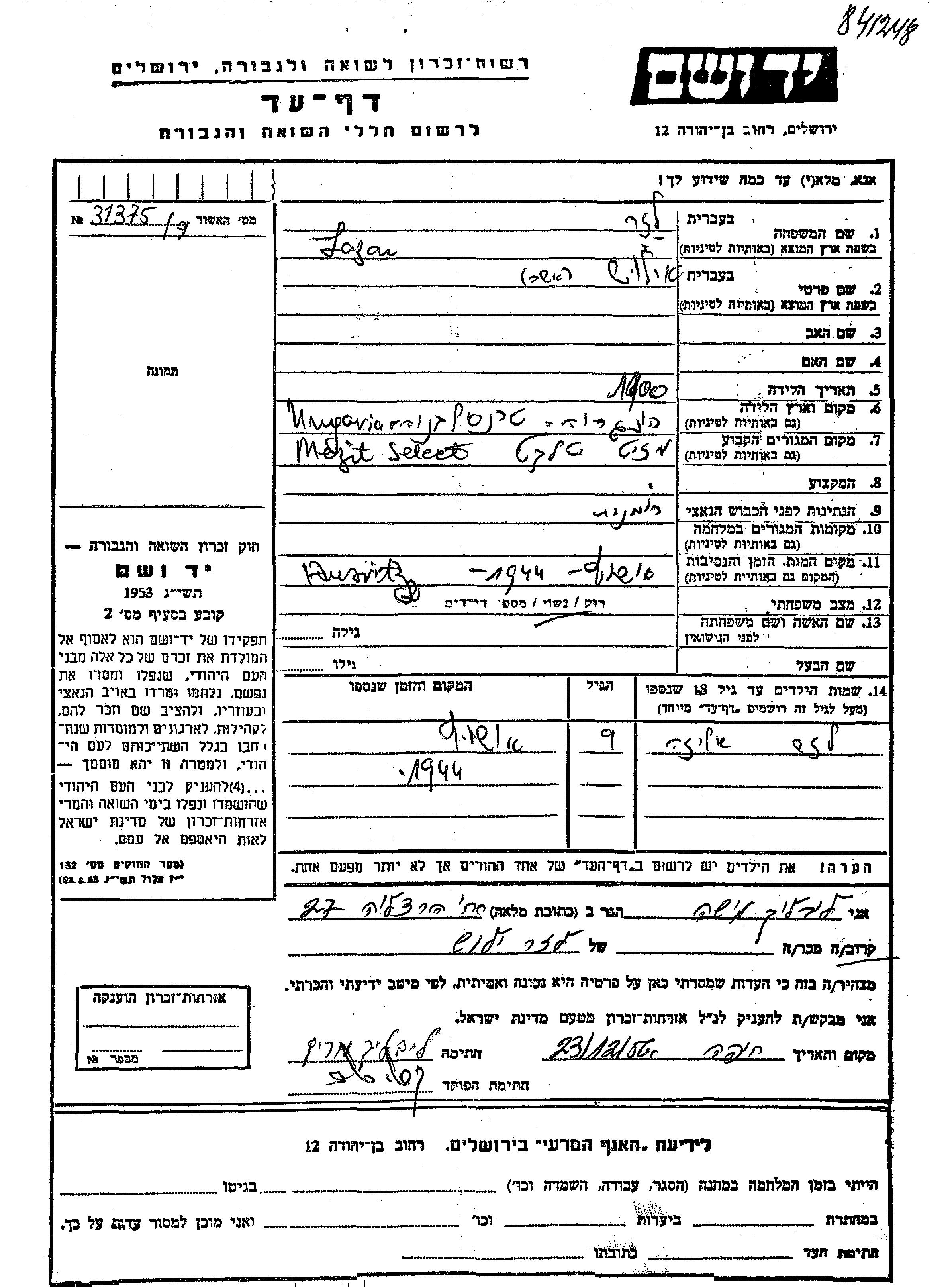 Yad Vashem - Pages of Testimony Names Memorial Collection