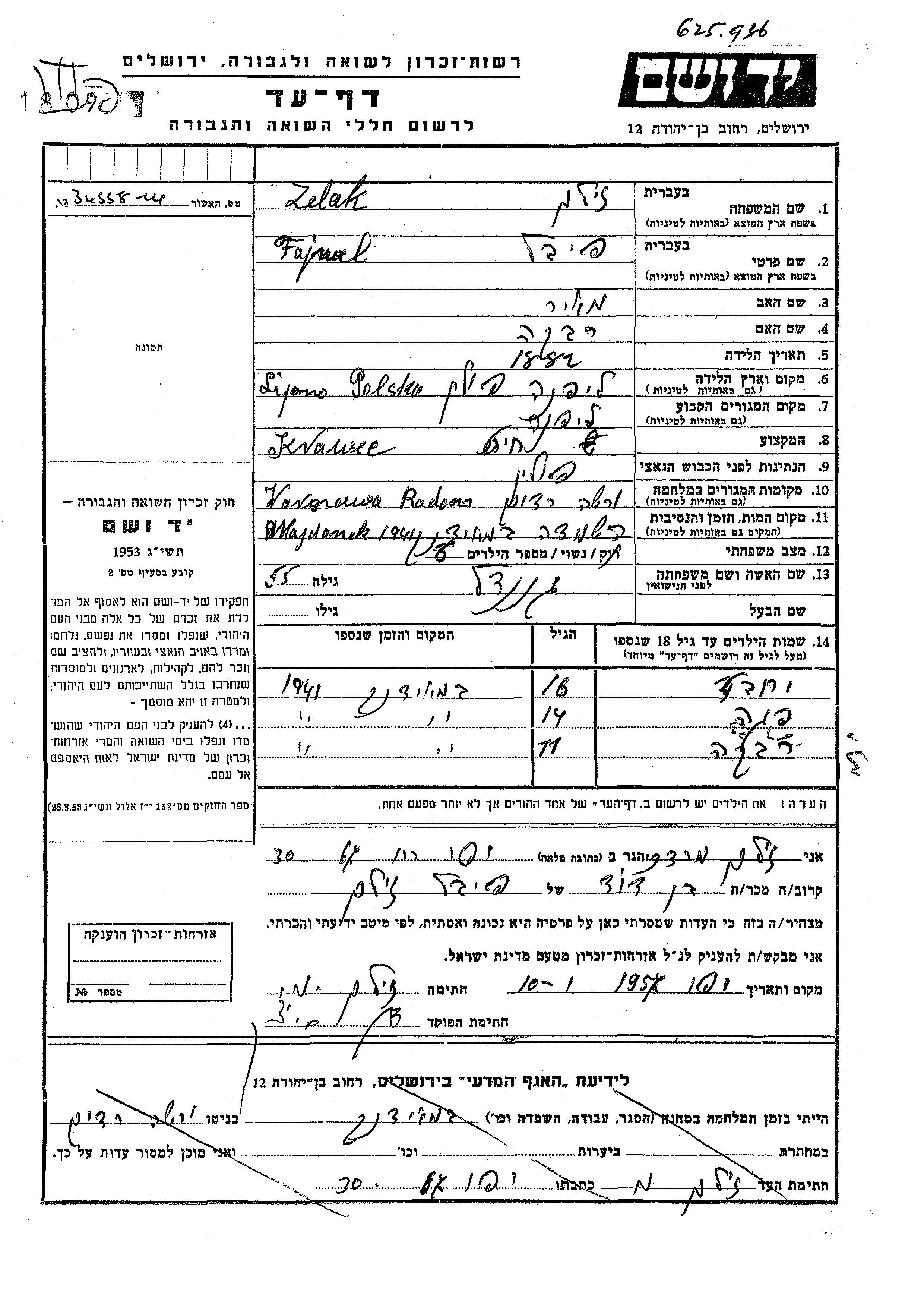 Yad Vashem - Pages of Testimony Names Memorial Collection