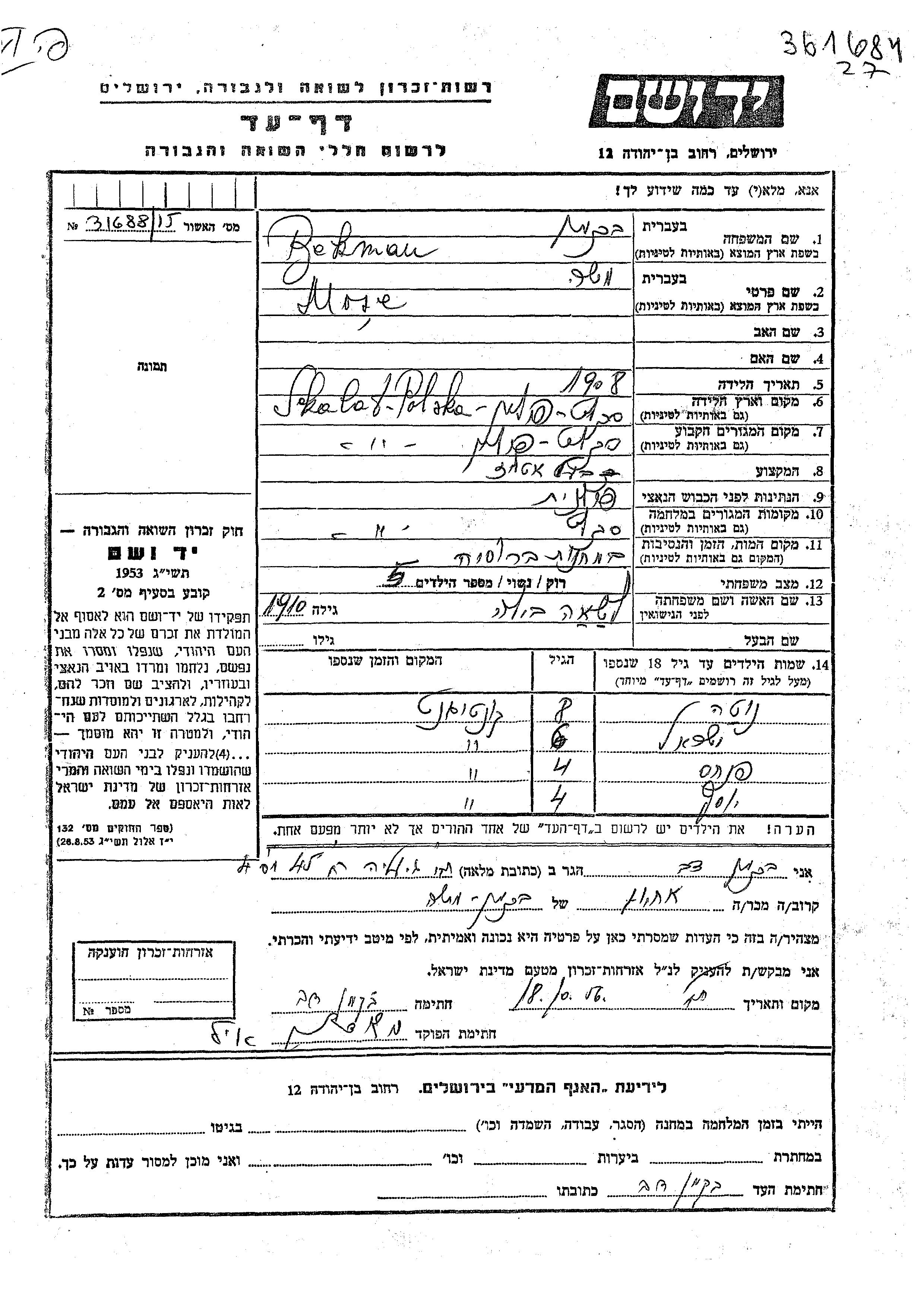 Yad Vashem - Pages of Testimony Names Memorial Collection